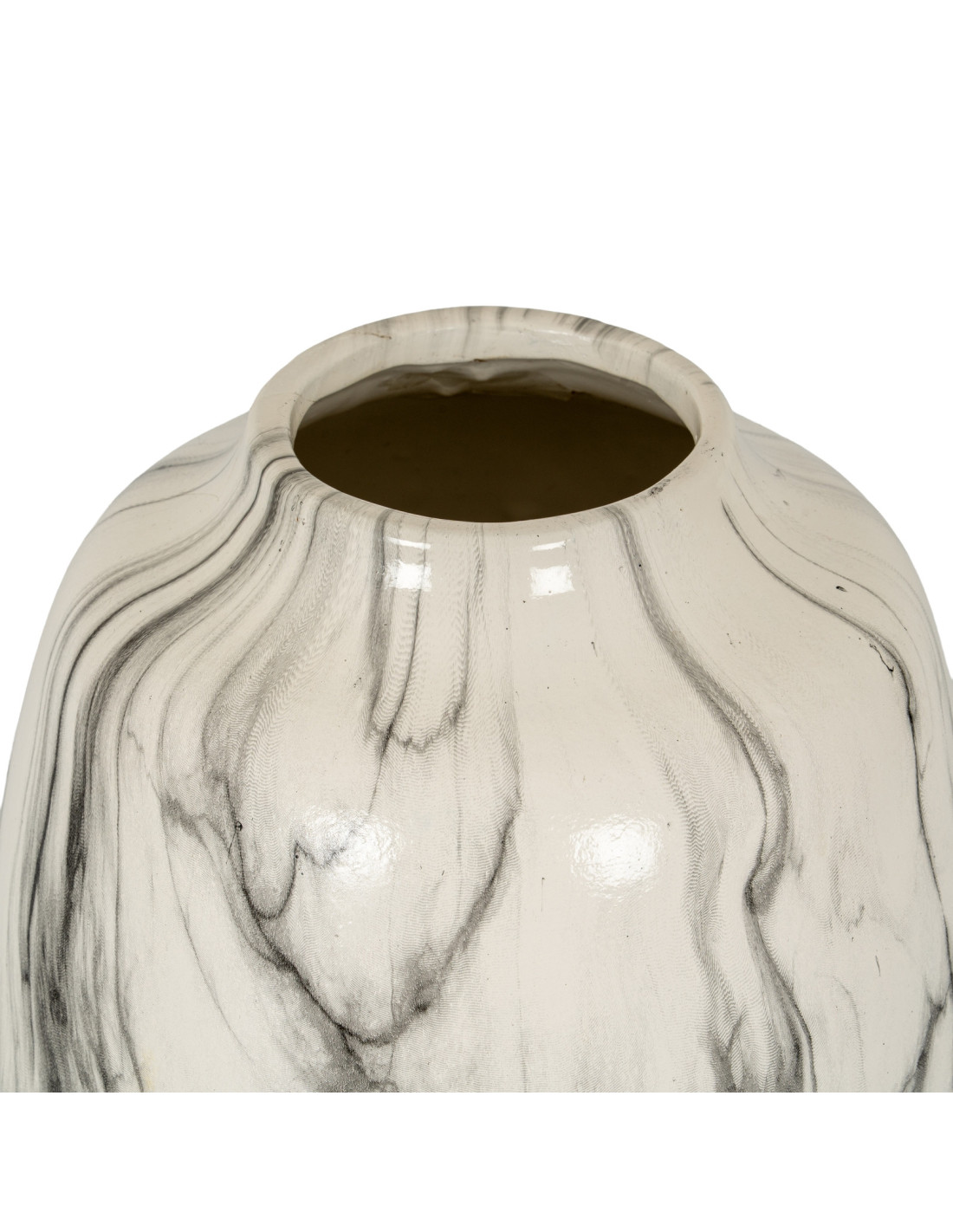 Its clean cylindrical silhouette offers sophisticated lines. These contrast beautifully with the organic swirls of the marble effect glazing. The result a captivating centrepiece for any interior setting. From minimalist flats to grander schemes this vase adds instant style.