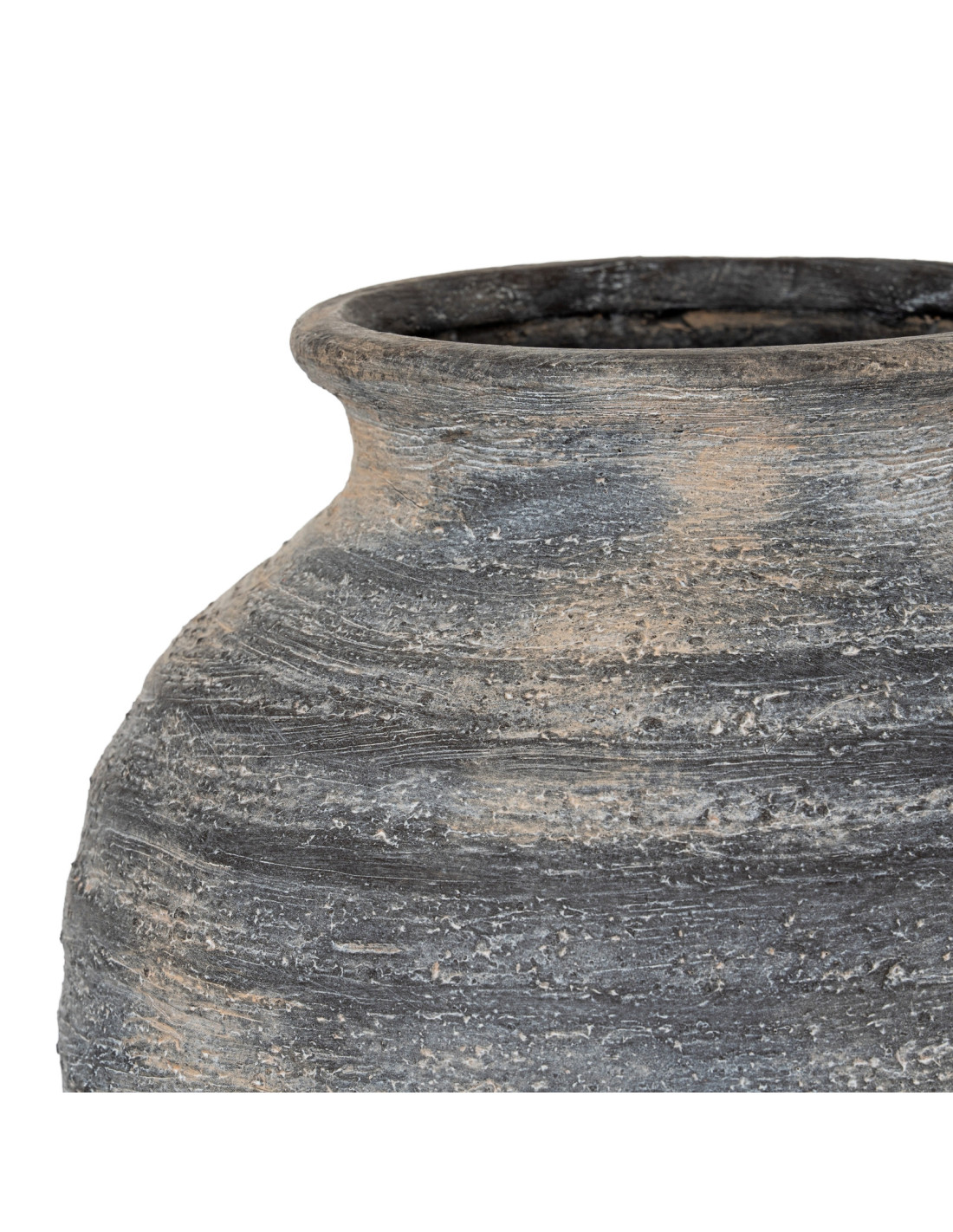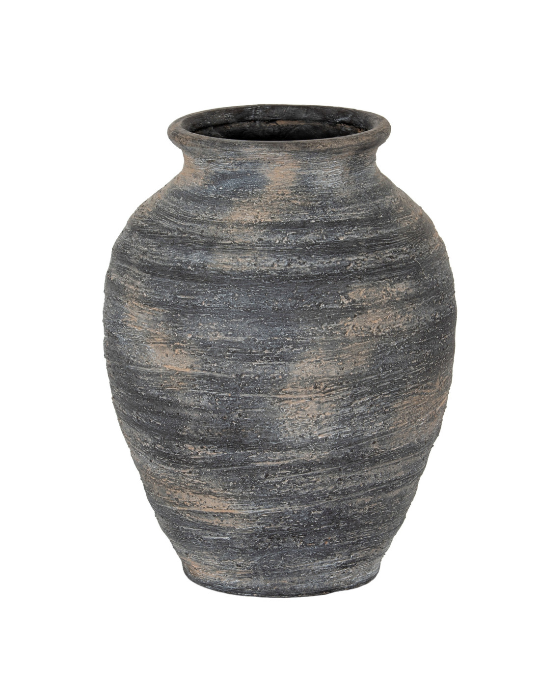 Observe the graceful curve of this vase flowing into a subtly flared rim. Light dances across its surface creating shifting patterns and intriguing visual depth. Its deep rich finish displays layers of tonal interest, making it a perfect fit for serene neutral schemes or more vibrant colourful interiors.