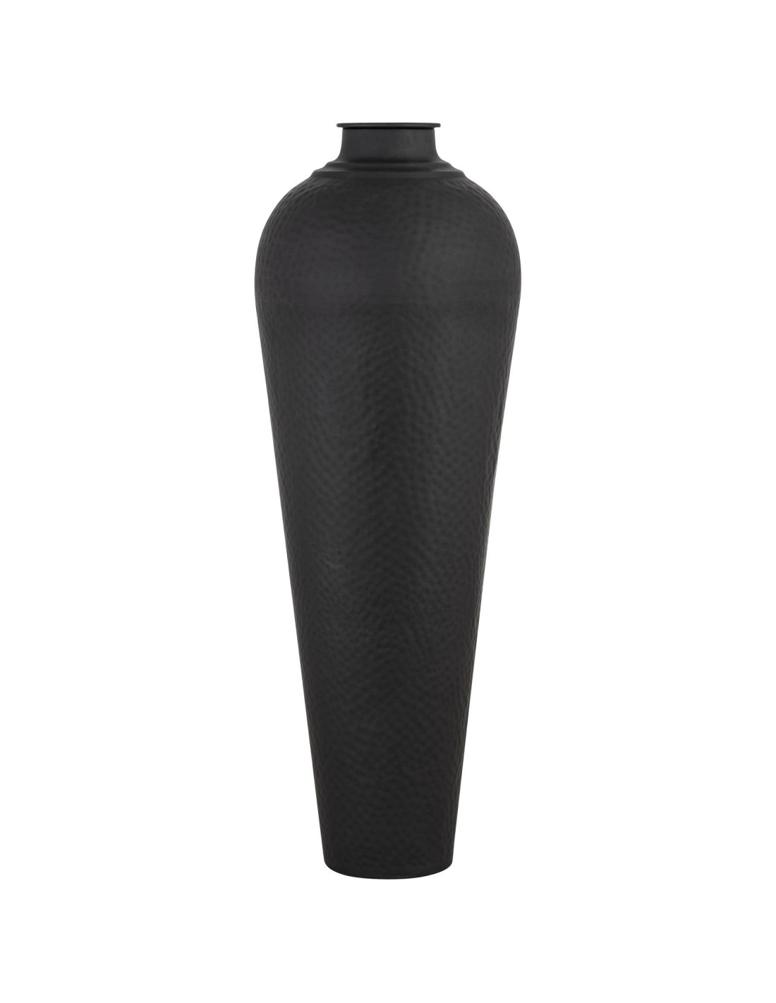Elevate your interior design w/ the Hill Interiors Matt Black Large Hammered Vase With Lid. This commanding piece brings immediate sophistication to any space. Its statuesque profile and deep matte black finish speak volumes of modern elegance. The distinct hammered surface catches light creating a dynamic visual that demands attention.