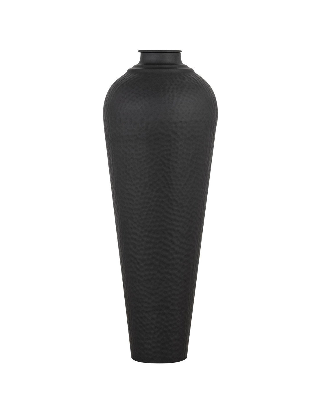 This is not just a vase. It is a declaration of refined taste. Each piece expertly formed from hammered steel showcases a unique texture beneath a luxurious matt black finish. Its distinctive surface captures light beautifully adding depth and intrigue to any space.