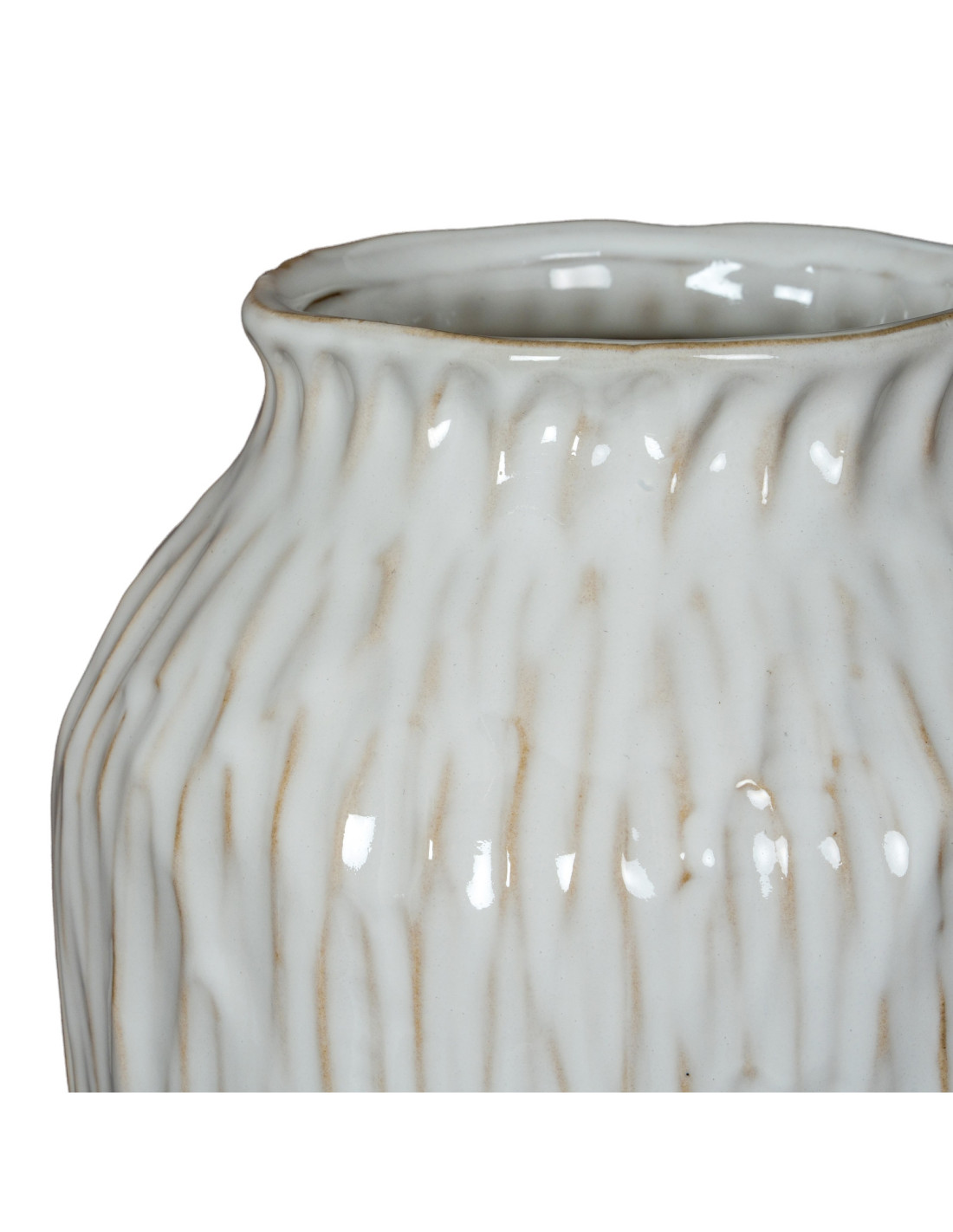 The glazed finish flows across the surface in understated tonal shifts evoking a layered patina. This design speaks of both heritage and modern sensibilities ensuring a timeless appeal for your living space. The vase is part of FastDaddy UKs Ceramic Collection known for quality and enduring style.