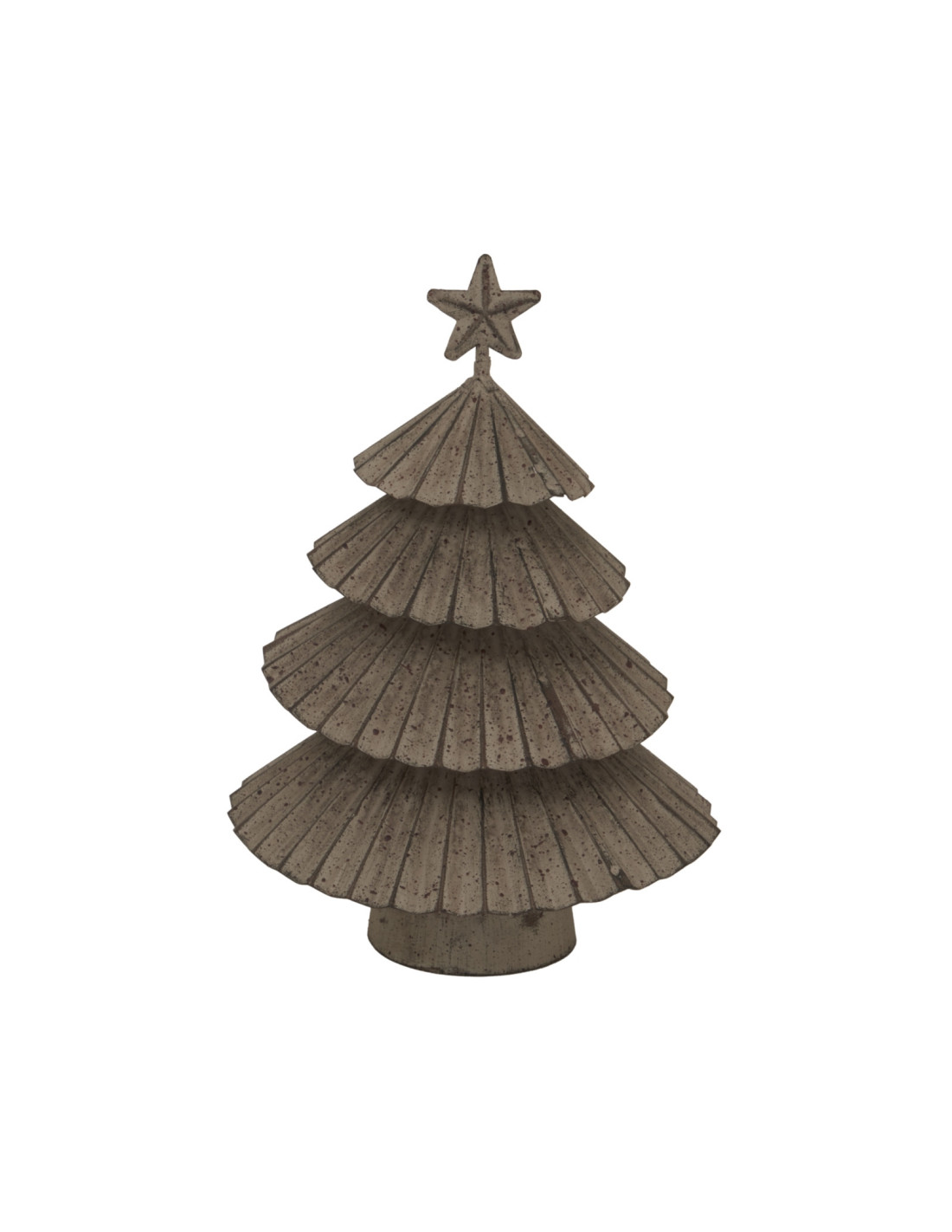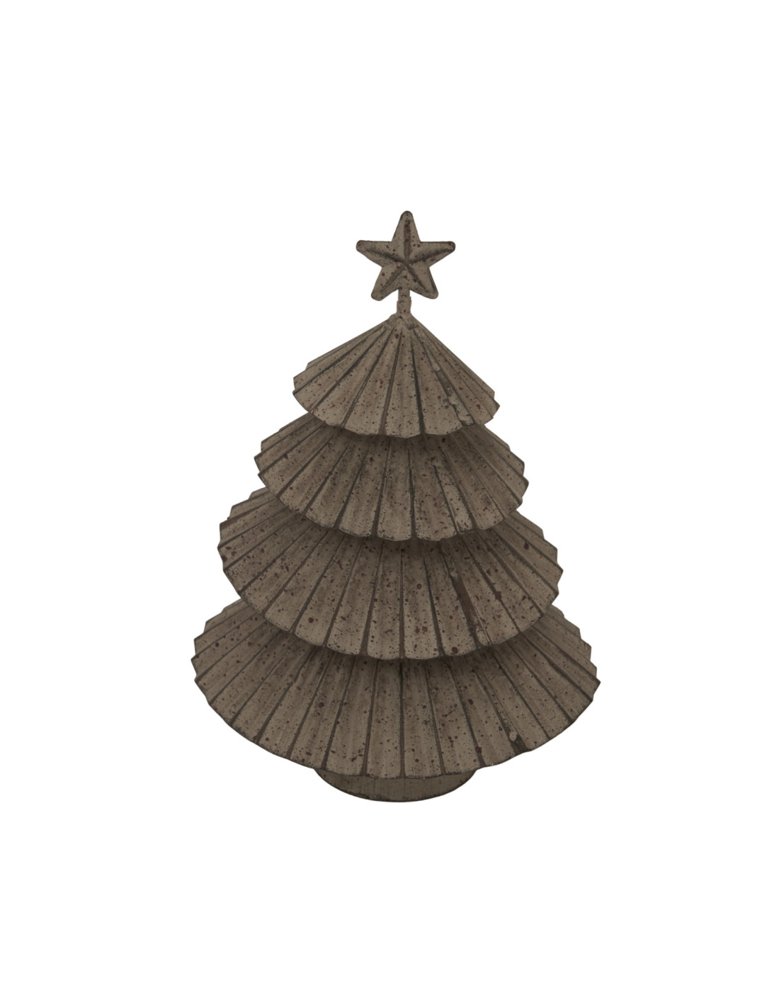 Observe the thoughtfully layered construction. Each tier displays detailed metalwork, catching and reflecting light in captivating ways. The weathered finish adds true character, offering durability for display year after year. Crowned with a dimensional star, this piece draws the eye, providing a point of interest from every angle.