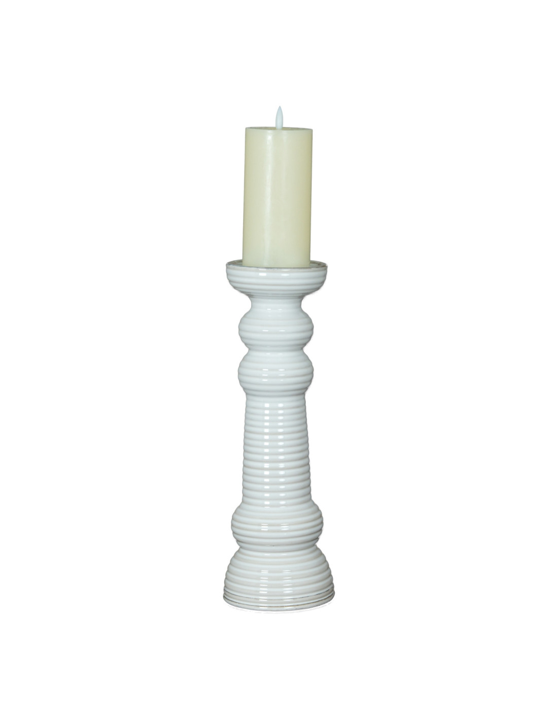 Formed from superb ceramic, this holder balances graceful symmetry with decorative detailing. It offers visual interest alongside a practical function for displaying your favourite pillar candles in style. Part of the acclaimed Ceramic Collection, its fine textural elements and clean, structured profile ensure it is a stylish, long-lasting accessory for your home. Its refined finish enhances the play of light from a candle, giving a warm ambient glow. Perfect for creating intimate or atmospheric environments at home.