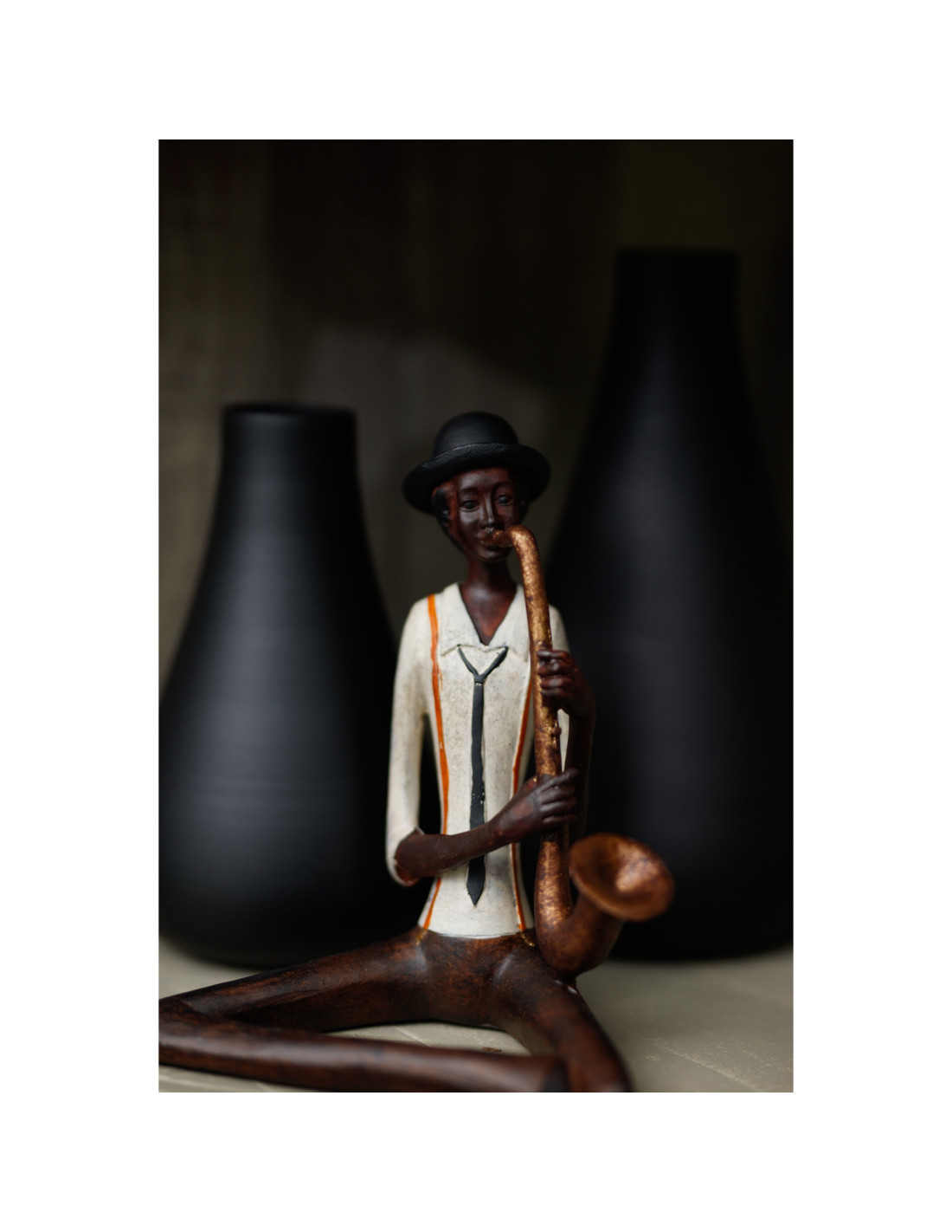 Infuse your home with rhythm and charm. Introducing the Hill Interiors Sitting Jazz Band Saxophonist 0260 a delightful addition for music lovers and decor enthusiasts alike.