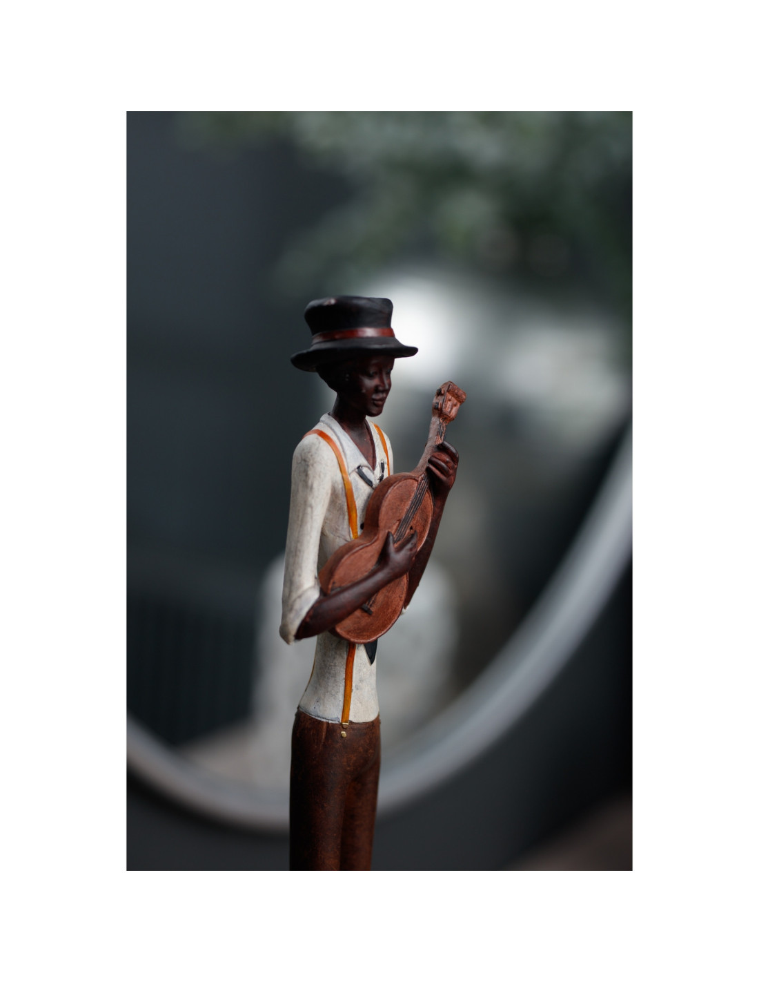 For maximum impact blend with Art Deco accessories rich velvet furnishings dark painted walls. Or curate an authentic jazz club feel alongside vintage music memorabilia. This violin player sets the scene beautifully.