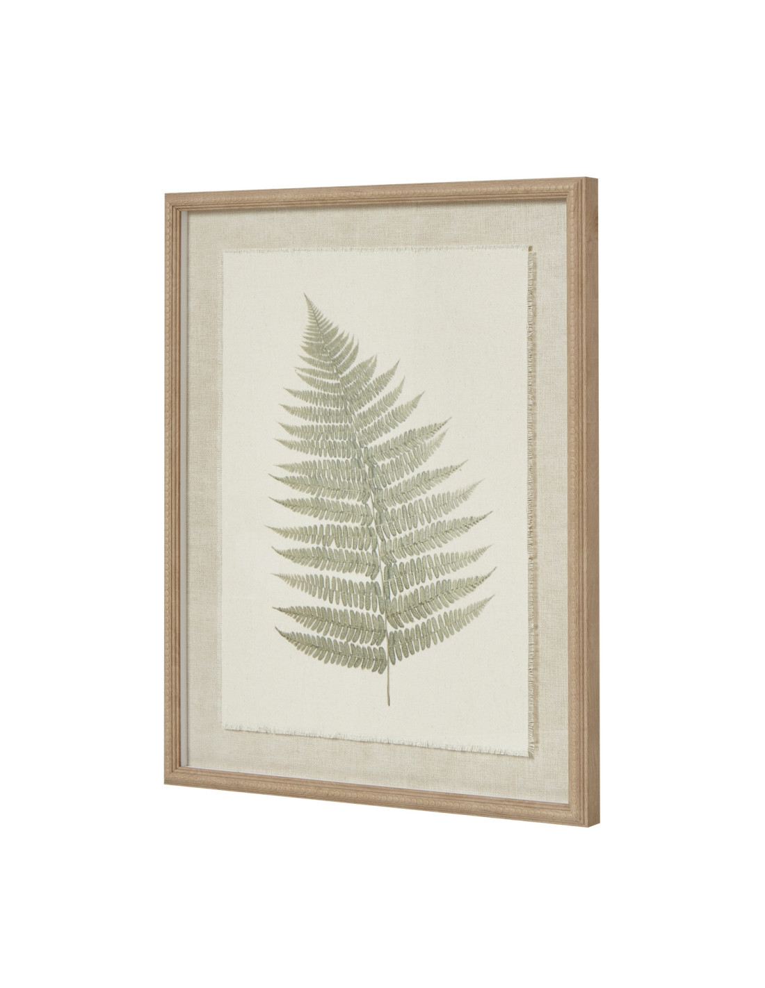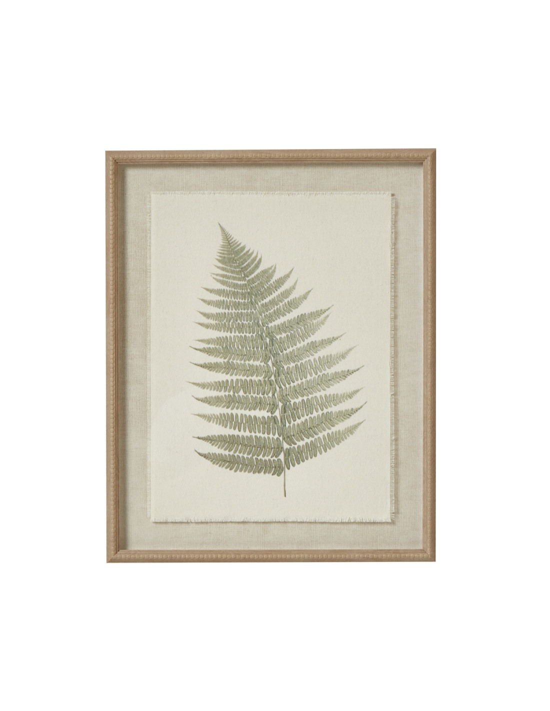 Witness the delicate beauty of a preserved bracken fern, artfully set against a distinctive textured torn paper background. This unique presentation creates depth and character, ensuring a captivating focal point for any room. The artwork then nestles within a sophisticated beaded frame, catching the light with a subtle shimmer. A refined detail that elevates the piece beyond the ordinary.