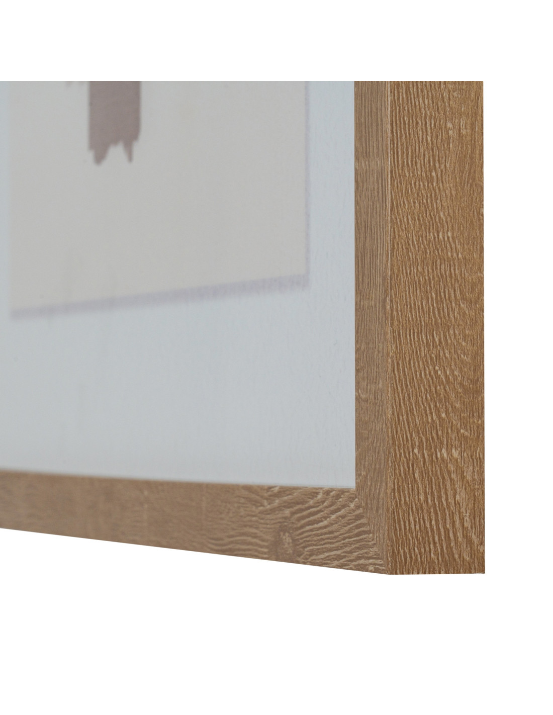 The solid wooden frame, with its distinct natural grain, provides a grounded contrast. It beautifully balances the art's detail, drawing your eye inward while its warm hue ensures it complements a wide array of interior styles. Whether your décor leans minimalist, rustic, or transitional, this piece finds its perfect spot.