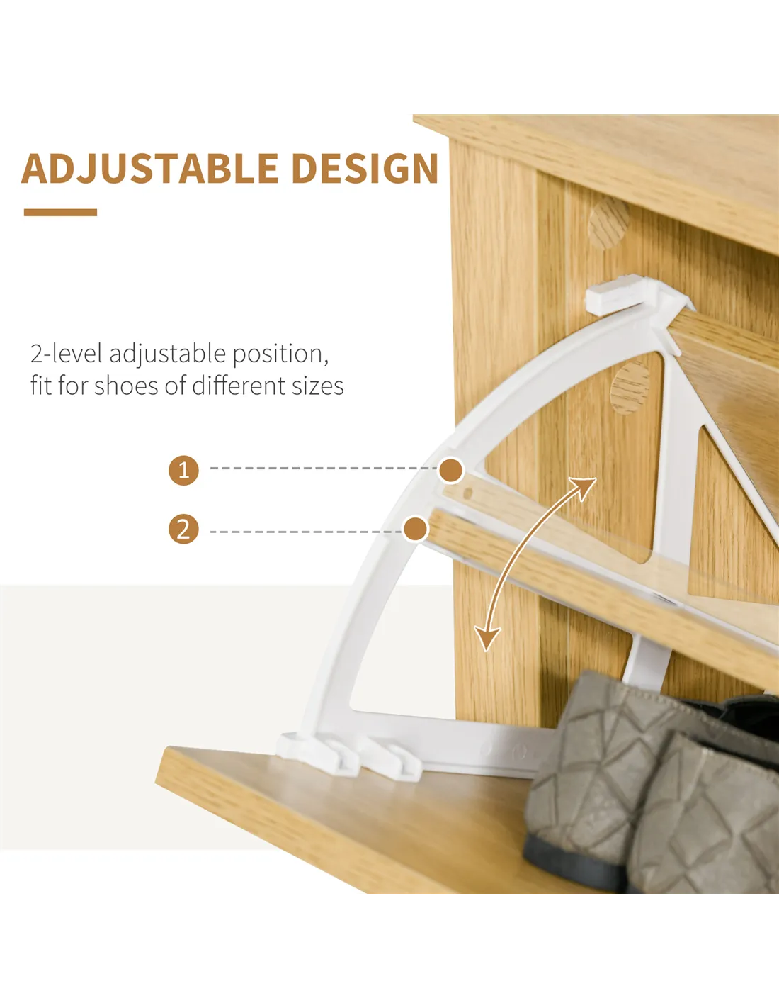 HOMCOM Narrow Shoe Cabinet, Space Saving Shoe Storage Cabinet with 2 Flip Drawers and Adjustable Shelves for 6-12 Pairs of Shoes for Hallways and Living Room, Natural Wood Finish