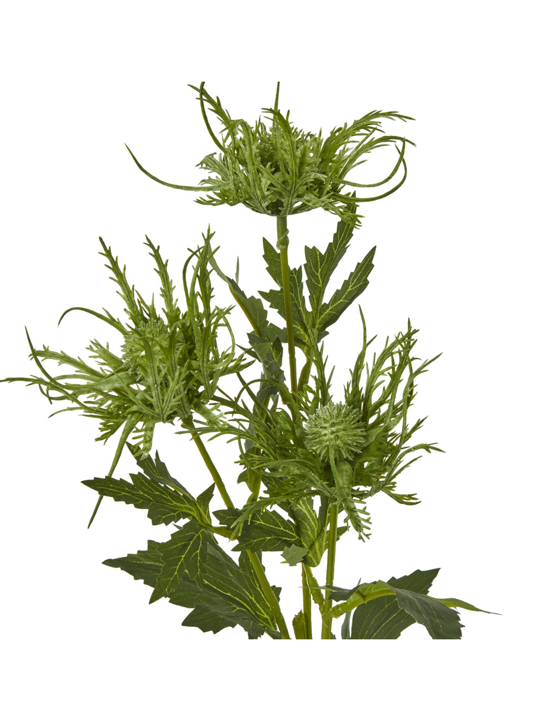 Bring the raw beauty of the coast indoors with our Green Sea Holly Spray. This faux floral piece offers a striking natural addition for any home decor. Inspired by the distinctive Eryngium genus this spray features spiny foliage and detailed blooms replicating the sea holly plant with exceptional precision. Its sturdy stems and vibrant green hues make it a versatile choice fitting many interior styles. From coastal-inspired schemes to rustic-chic aesthetics this spray delivers a touch of organic elegance. Pair it with textural elements like dried grasses or seashells for a captivating nature-inspired display. Whether used alone in a favourite vase or as part of a larger arrangement the Sea Holly Spray brings a fresh inviting feel to your space.