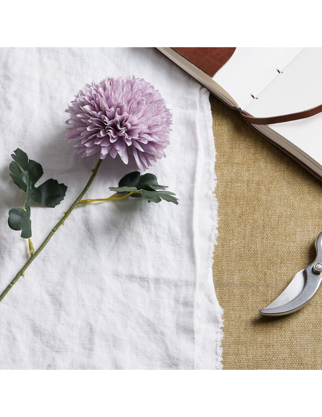 For a beautifully balanced display, pair this chrysanthemum with a pale green-blue variety. Alternatively achieve a striking contrast by placing it alongside a large white poppy stem. Gentle ambient lighting from cream or white LED candles enhances its subtle colour variations, creating a serene atmosphere. Combine with a purple chrysanthemum bouquet for a cohesive, professional arrangement appealing to discerning tastes seeking lasting, fuss-free florals.