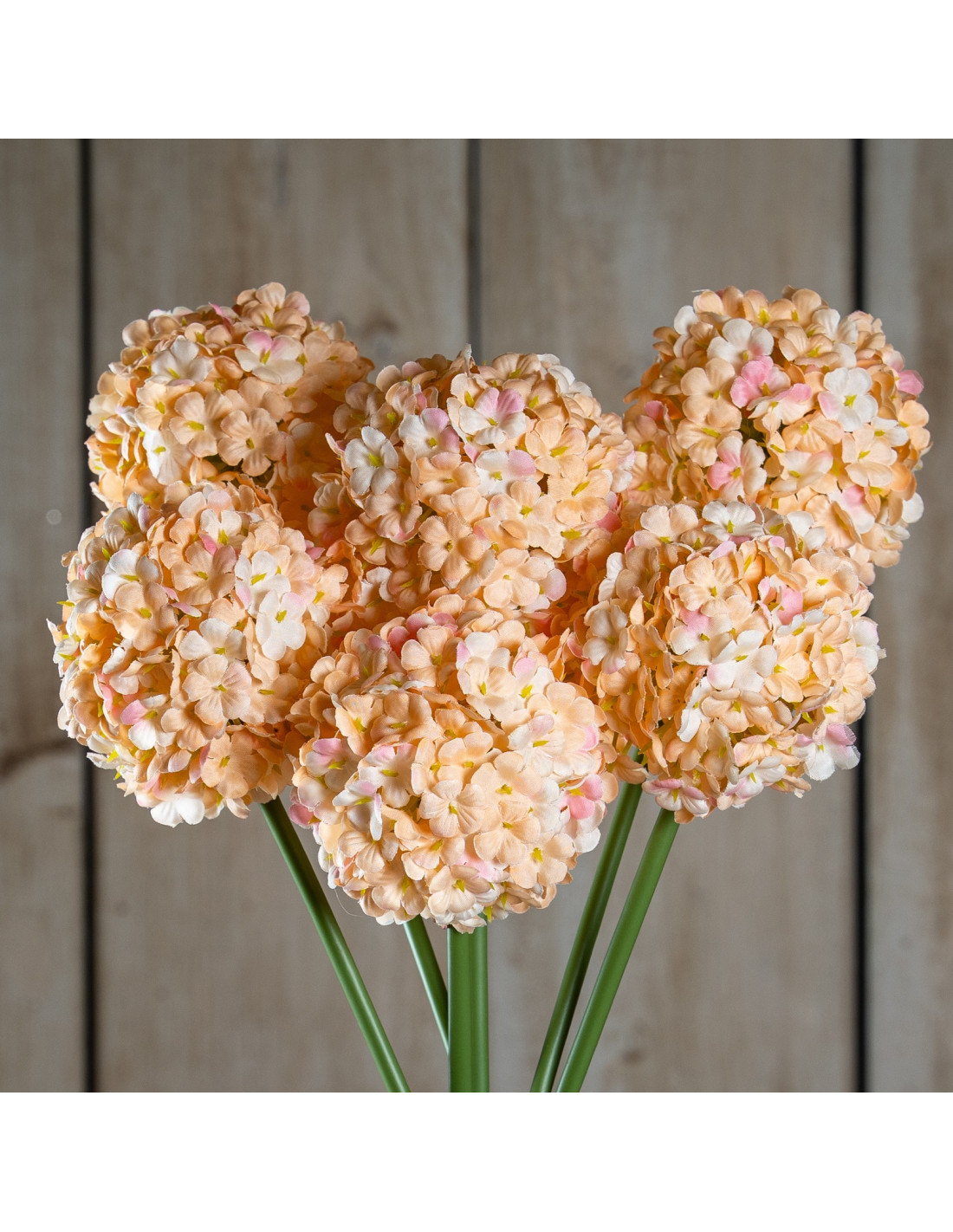 Behold a large, spherical umbel composed of countless tiny florets, each bathed in a soft, warm apricot colour. The long, slender green stem provides a realistic touch, completing a look so convincing it brings pure joy.