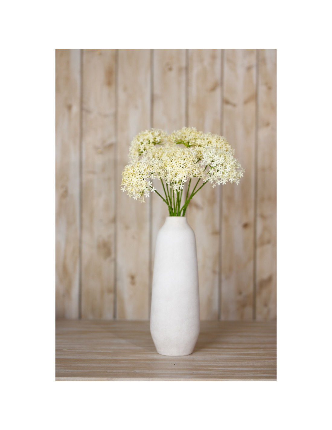 Observe the delicate lacy blooms characteristic of the Allium. Each head provides compelling visual interest drawing the eye without overwhelming. Fashioned with an excellent eye for detail this spray presents multiple flower heads in a gentle creamy hue. It radiates a timeless charm.