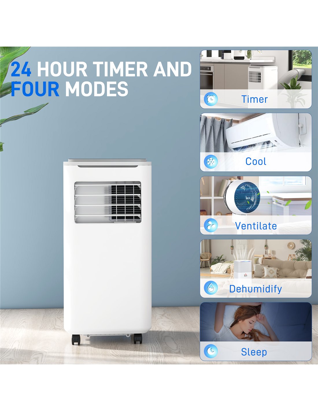 A multifunctional air conditioning unit, from HOMCOM: it cools, dehumidifies and ventilates. It also has a sleep mode (quiet) too, with a 24-hour timer, making it suitable for night-time use. Controlled by both an App and remote, it's very easy to use, even if you're far away. Set the temperature between 16-30℃ - easy to pick a temperature most comfortable for you. Complete with the self-evaporating system, which helps reduce the amount of times you need to empty the tank.