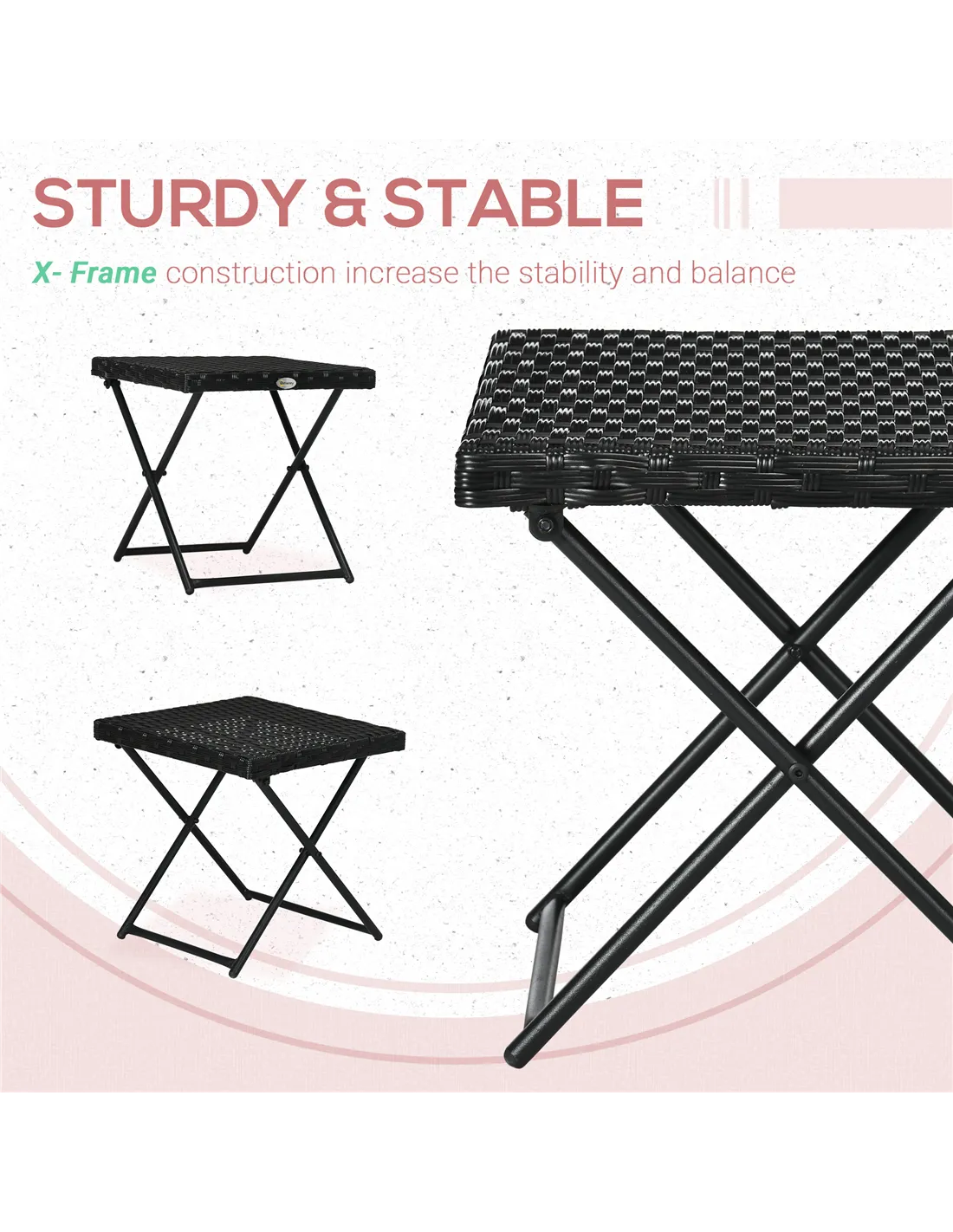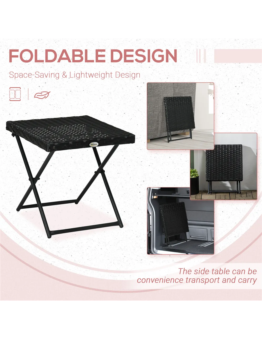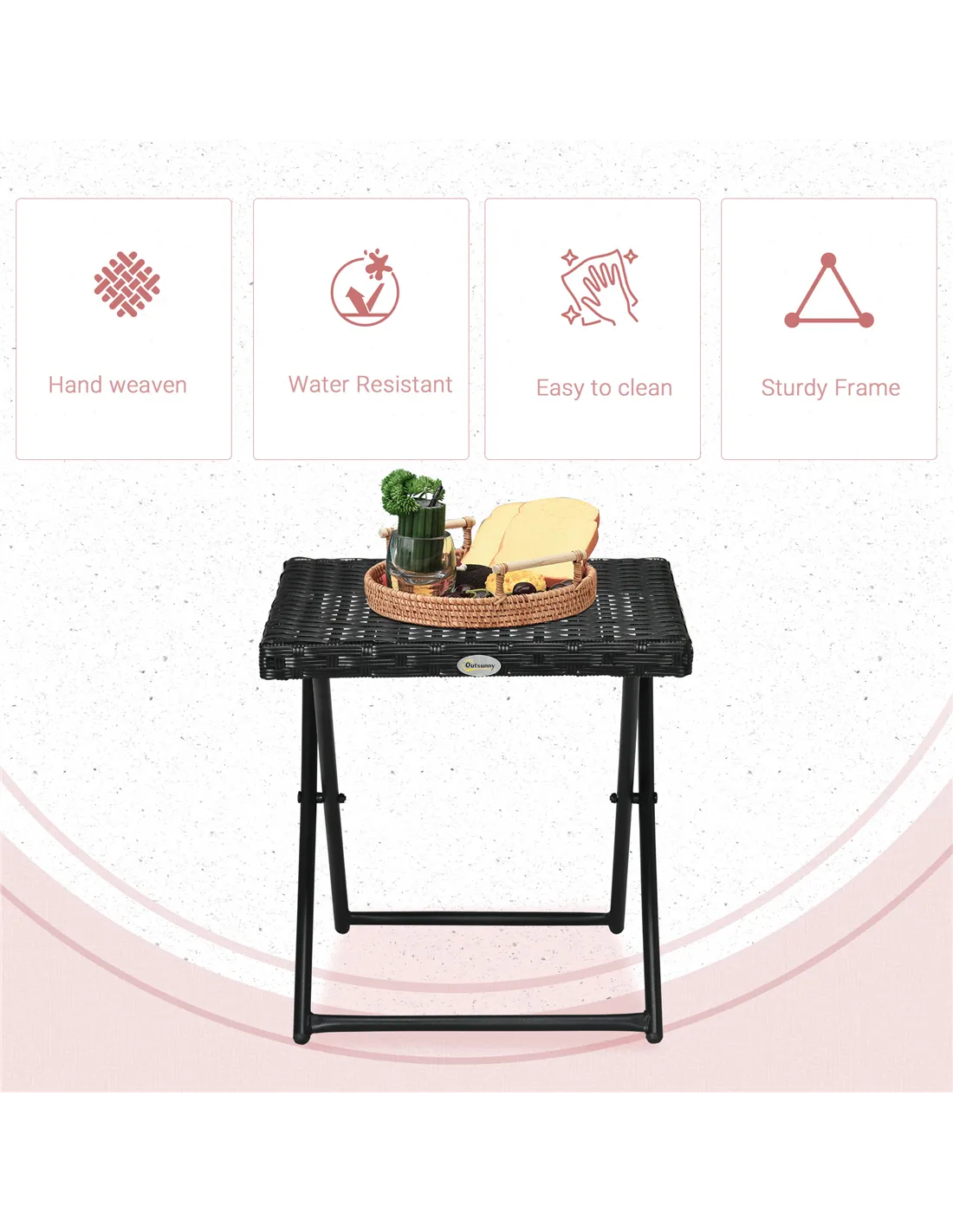 Outsunny Square PE Wicker Rattan Folding Table - Black