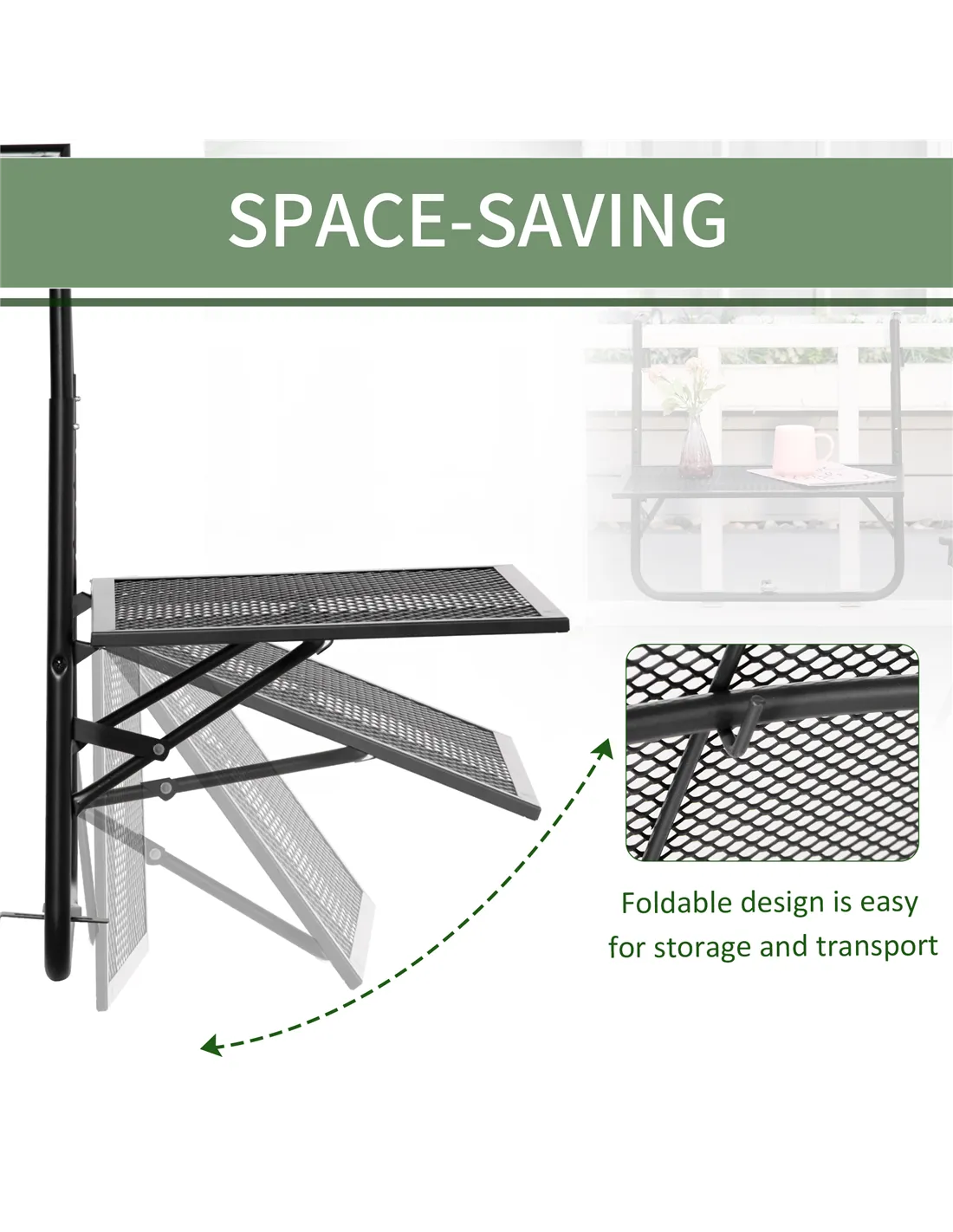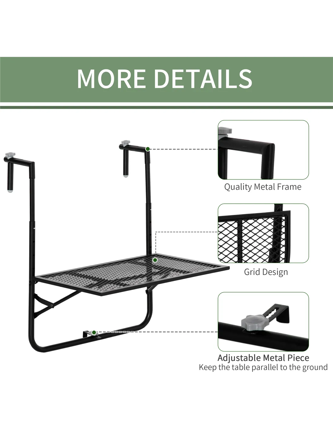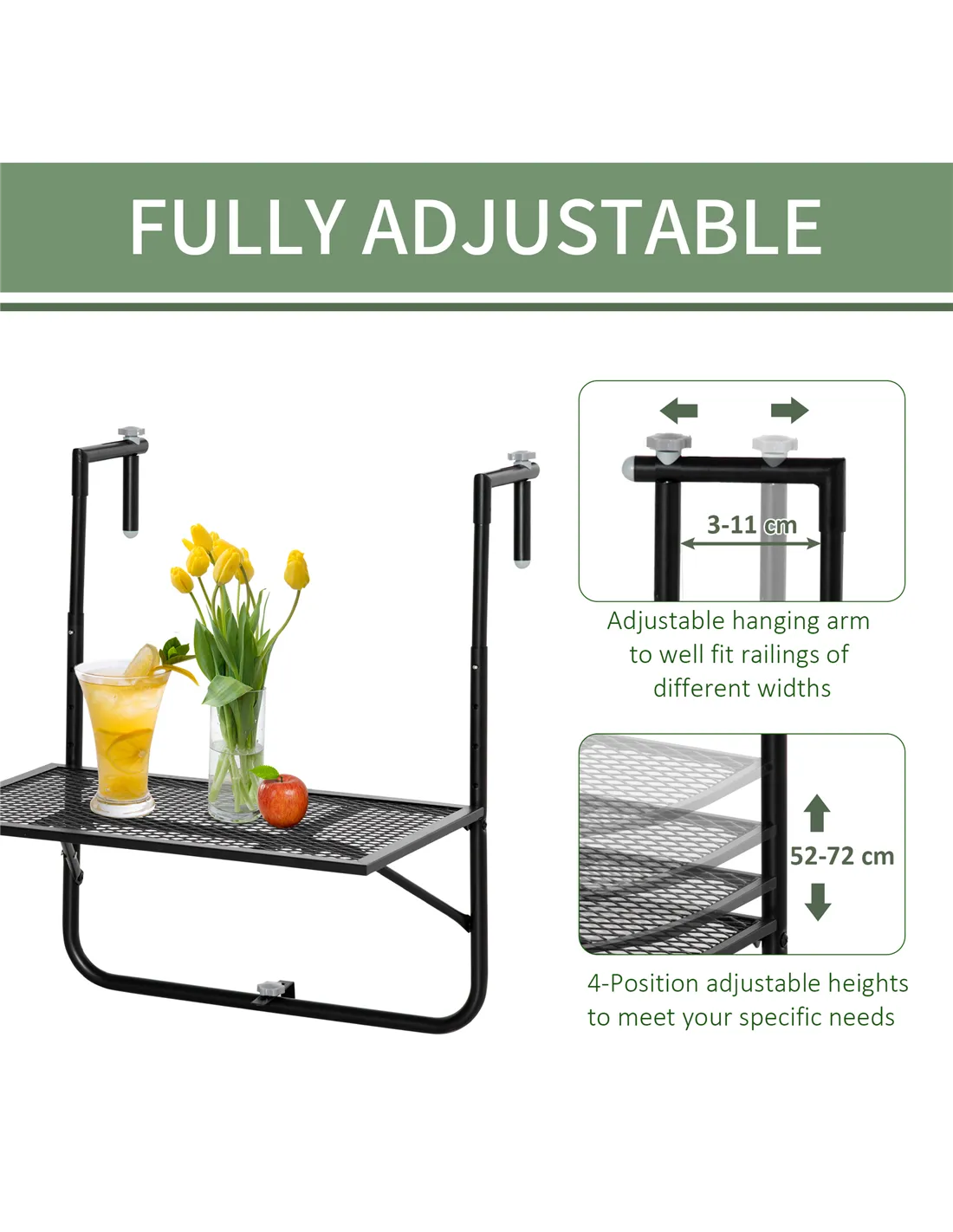 Outsunny Balcony Hanging Table, Metal Wall Mount Desk, Adjustable Folding Balcony Deck Table for Patio and Garden, Black