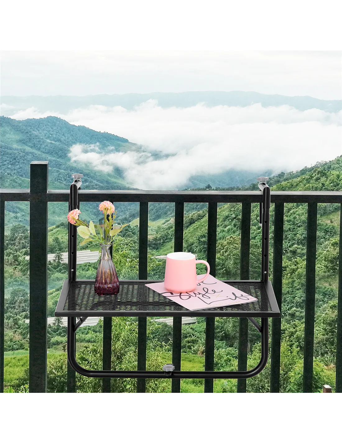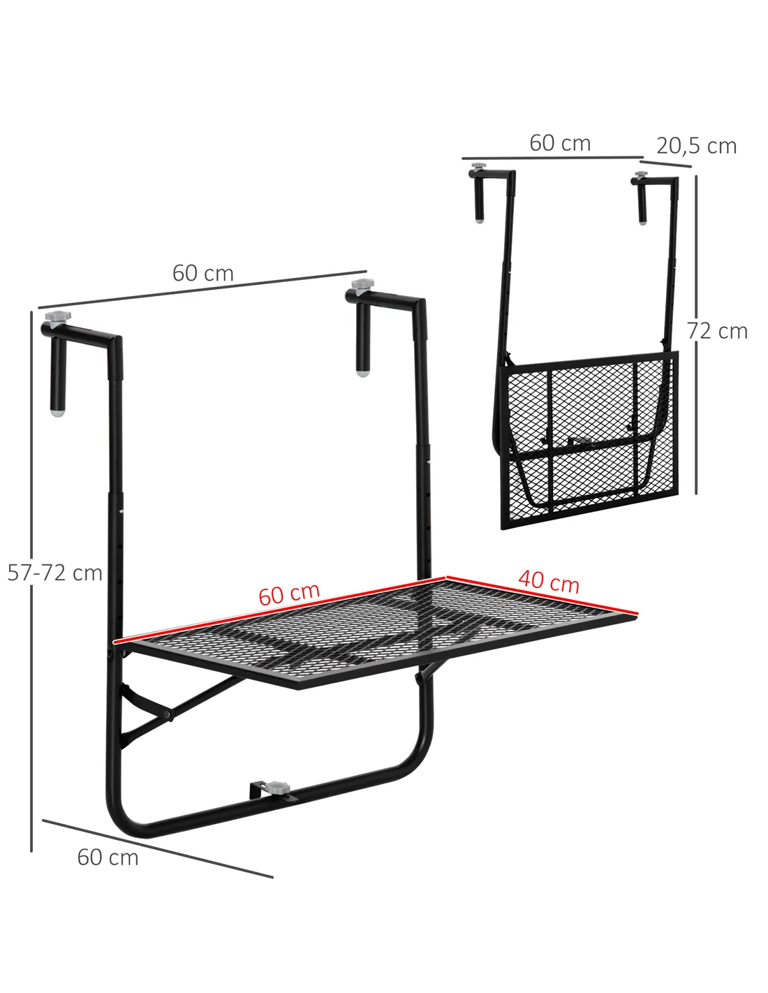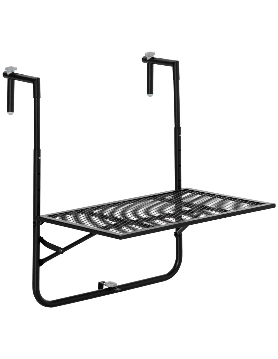 Outsunny Balcony Hanging Table, Metal Wall Mount Desk, Adjustable Folding Balcony Deck Table for Patio and Garden, Black