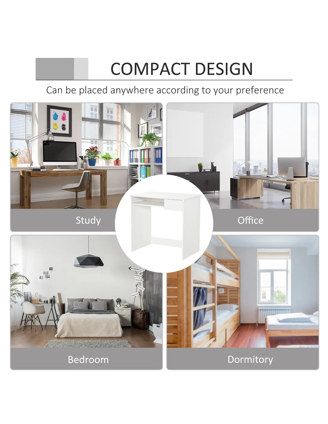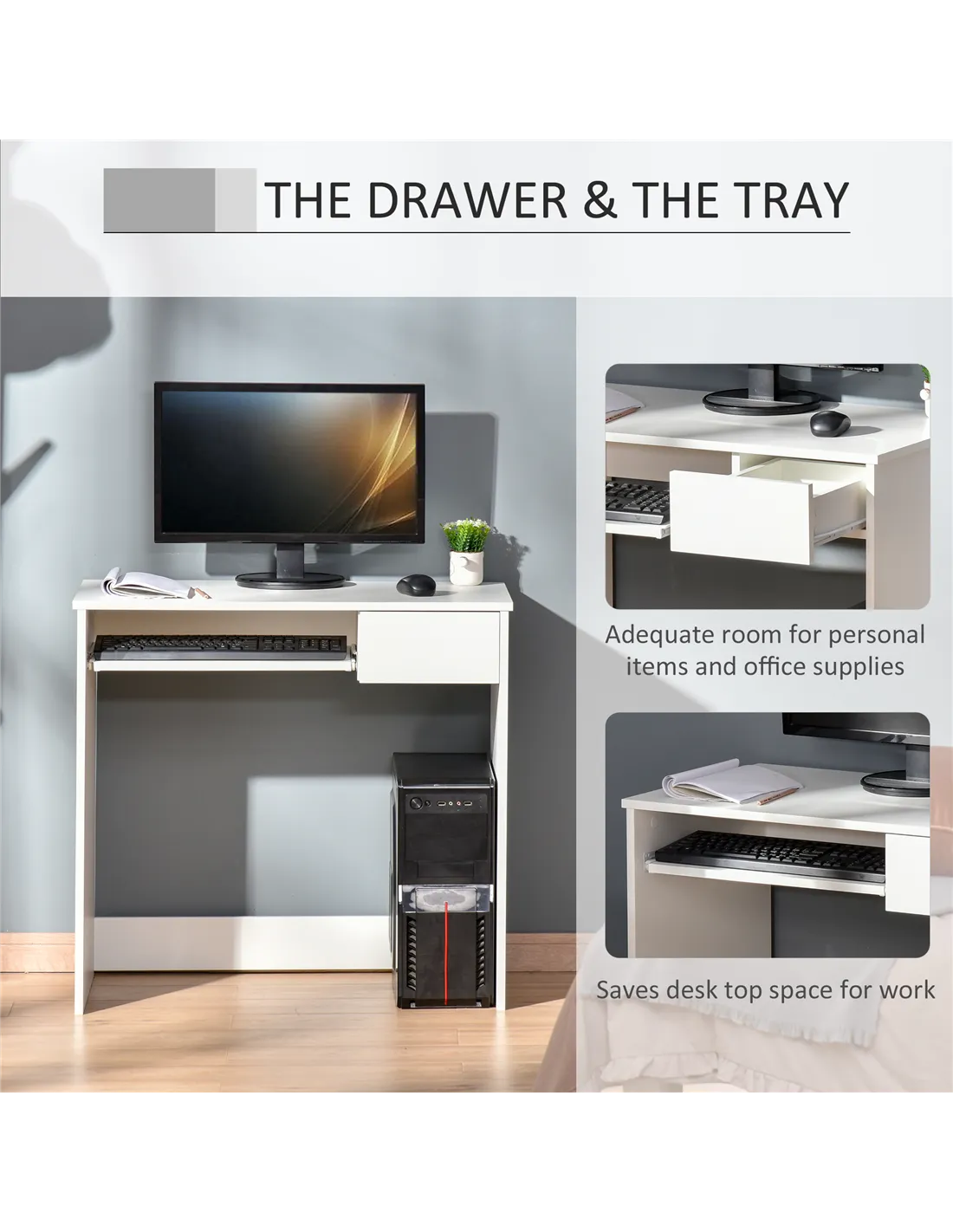 HOMCOM 80cm Compact Computer Desk with Keyboard Tray, Home Office Desk with Drawer for Bedroom Study, White