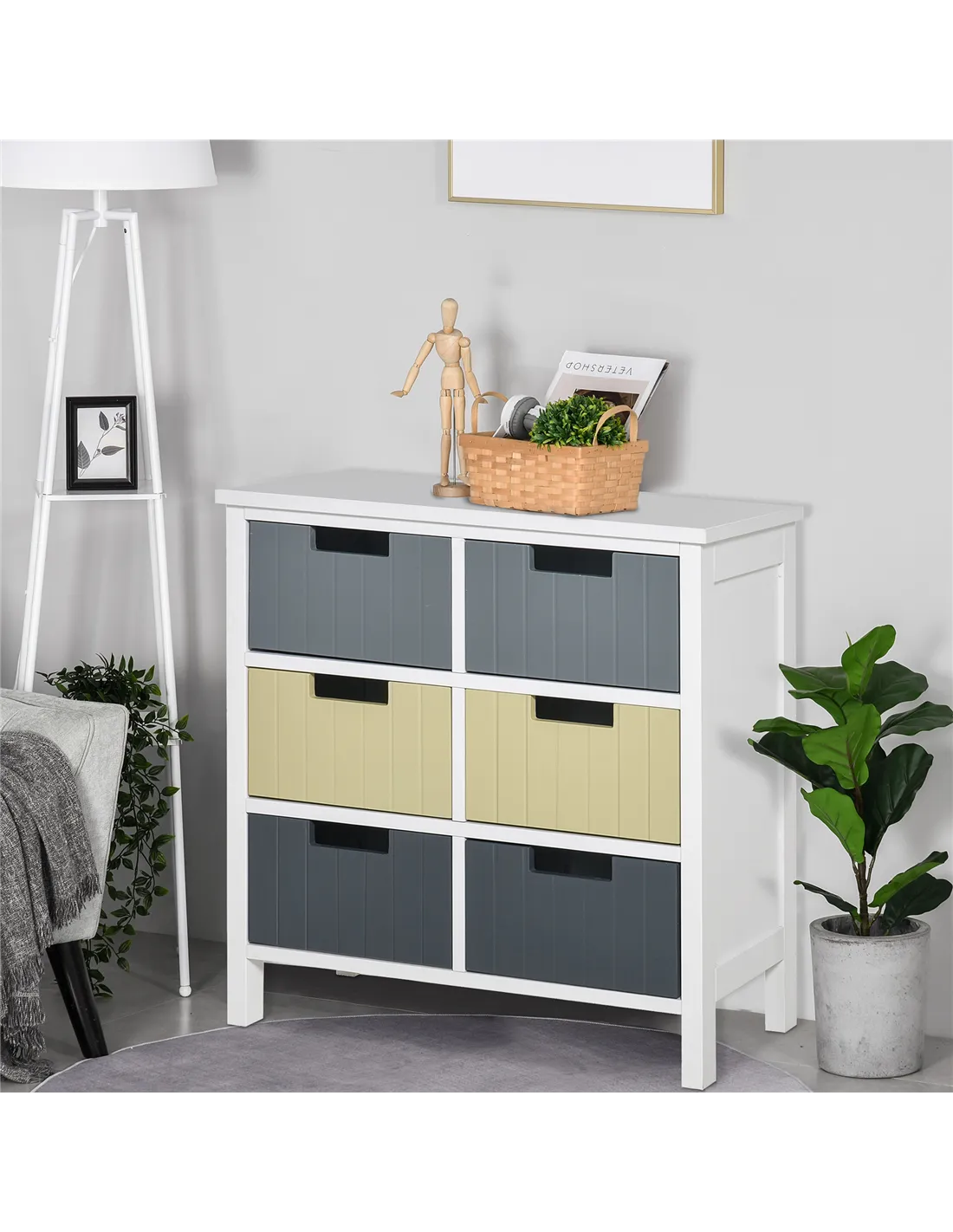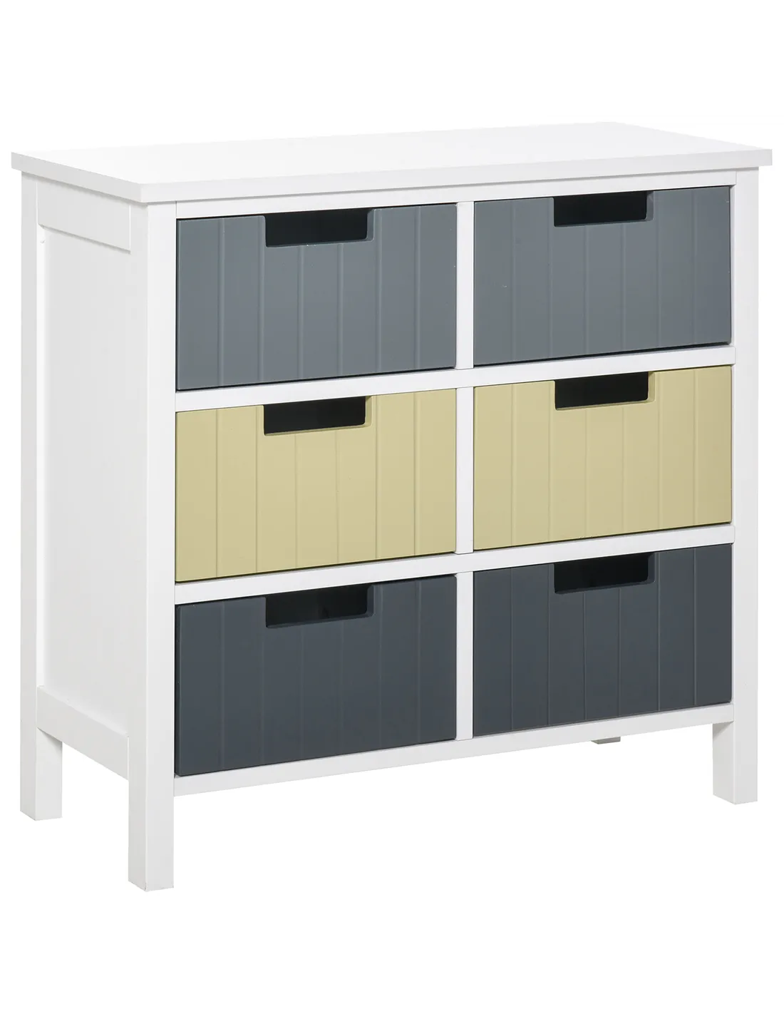There's an easy way to bring colour in the home - and it's with this bedroom chest of drawers from HOMCOM. The bedroom drawers features six drawers for plenty of storage - in three gentle shades to make it softly stand out. Made from MDF, the structure is robust enough for everyday use, with a water-resistant surface for extra protection. It is finished with four long legs and a large and flat tabletop for extra holding space. It's time to refresh your home the right way this season.