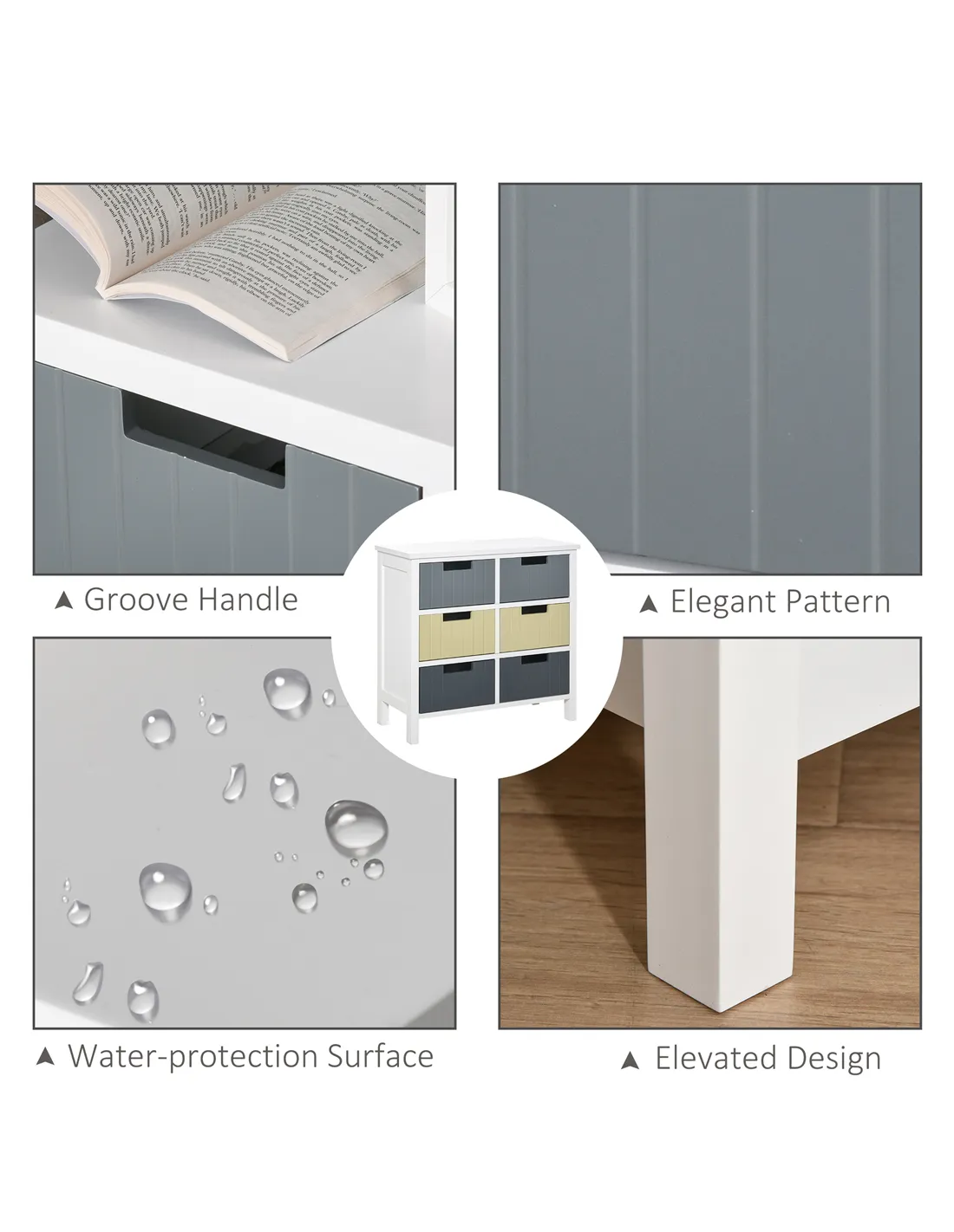 Yes, the dresser chest features a water-resistant paint finish that wipes clean effortlessly, ideal for busy homes.