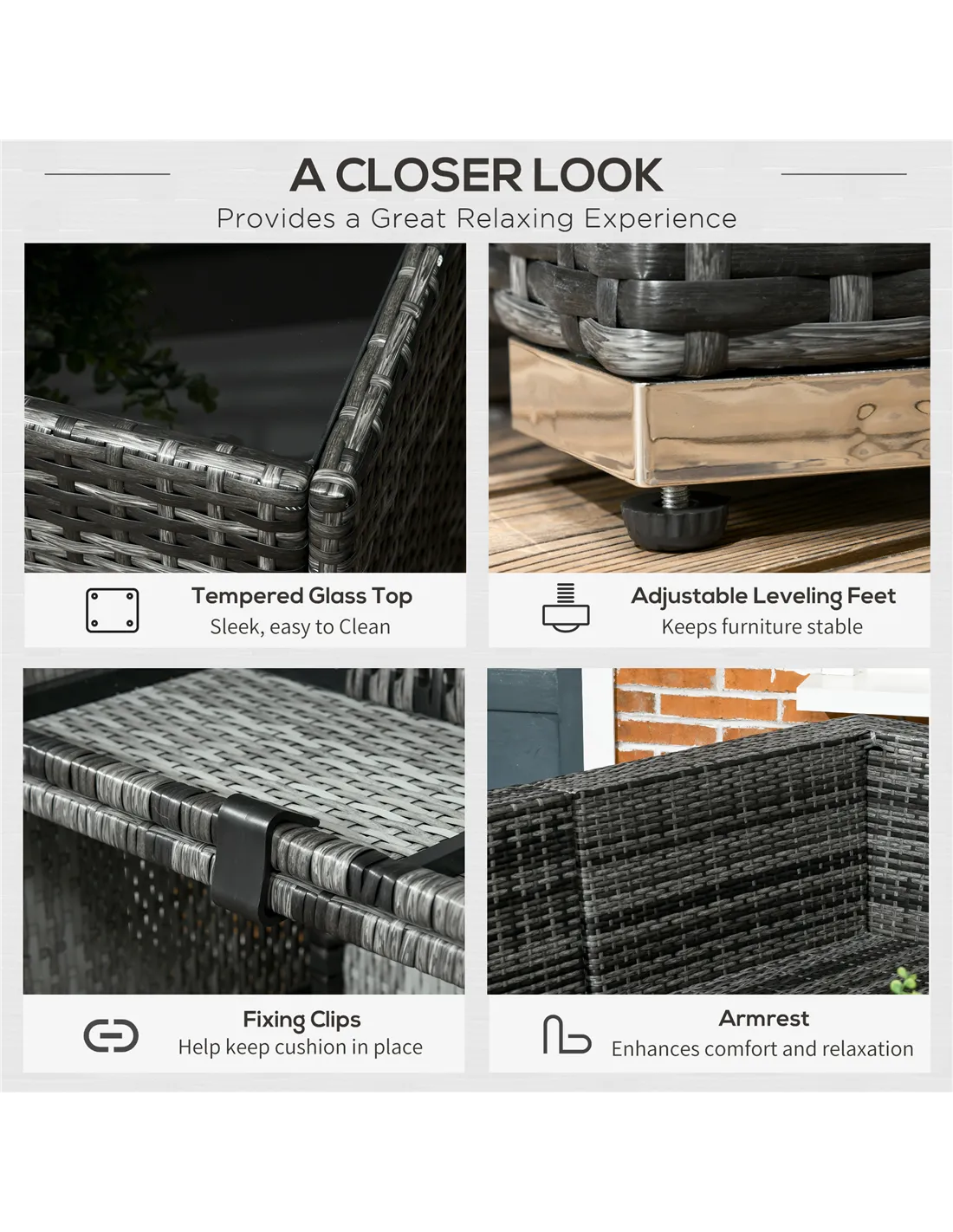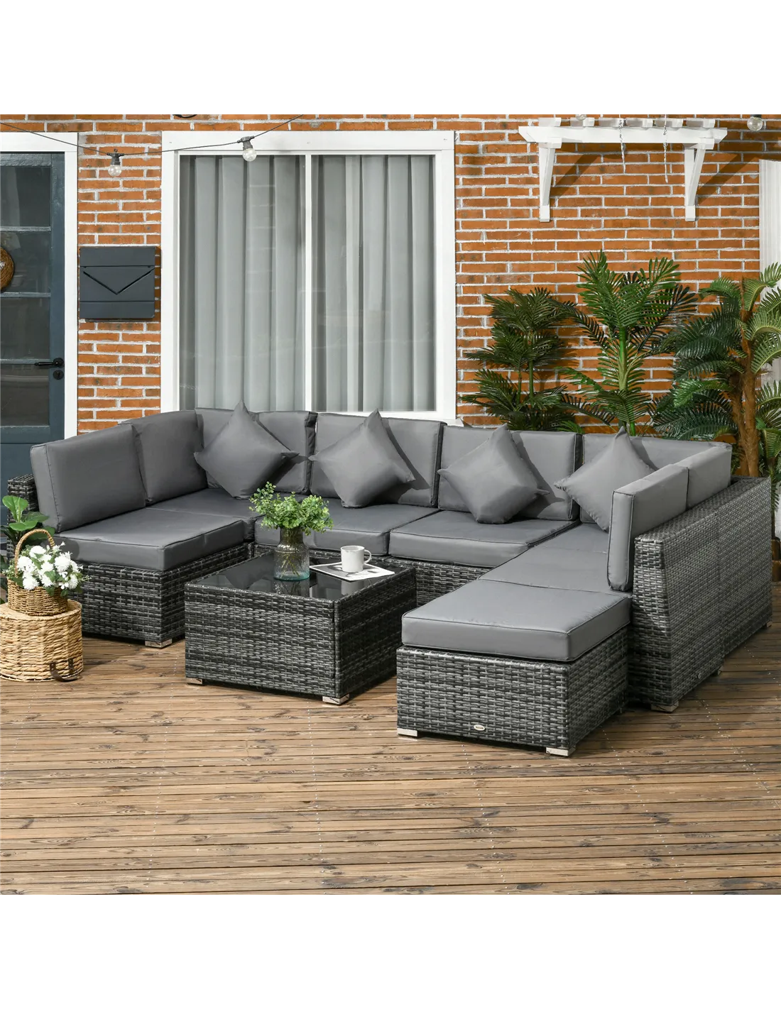 Outsunny 8 Pieces PE Rattan Corner Sofa Set, Outdoor Garden Furniture Set, Patio Wicker Sofa Seater w/ Cushion, Washable Cushion Cover & Tempered Glass Table, Grey