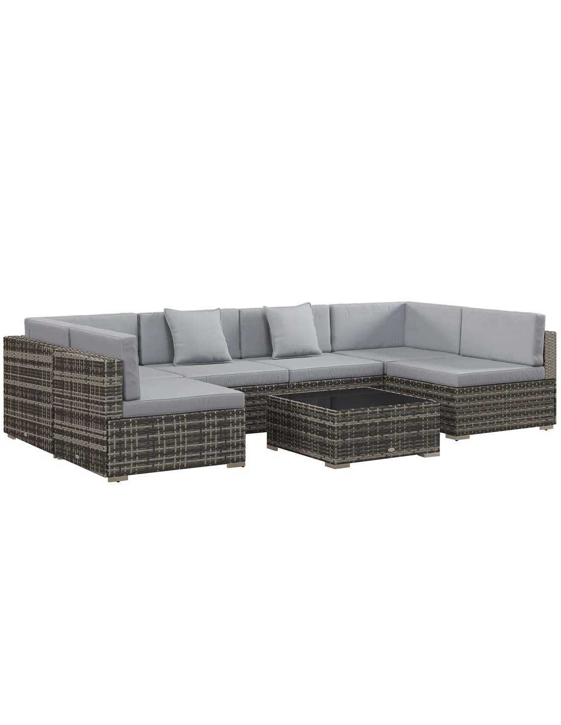 Outsunny Seven-Piece Rattan Garden Set, with Glass-Top Table - Mixed Grey