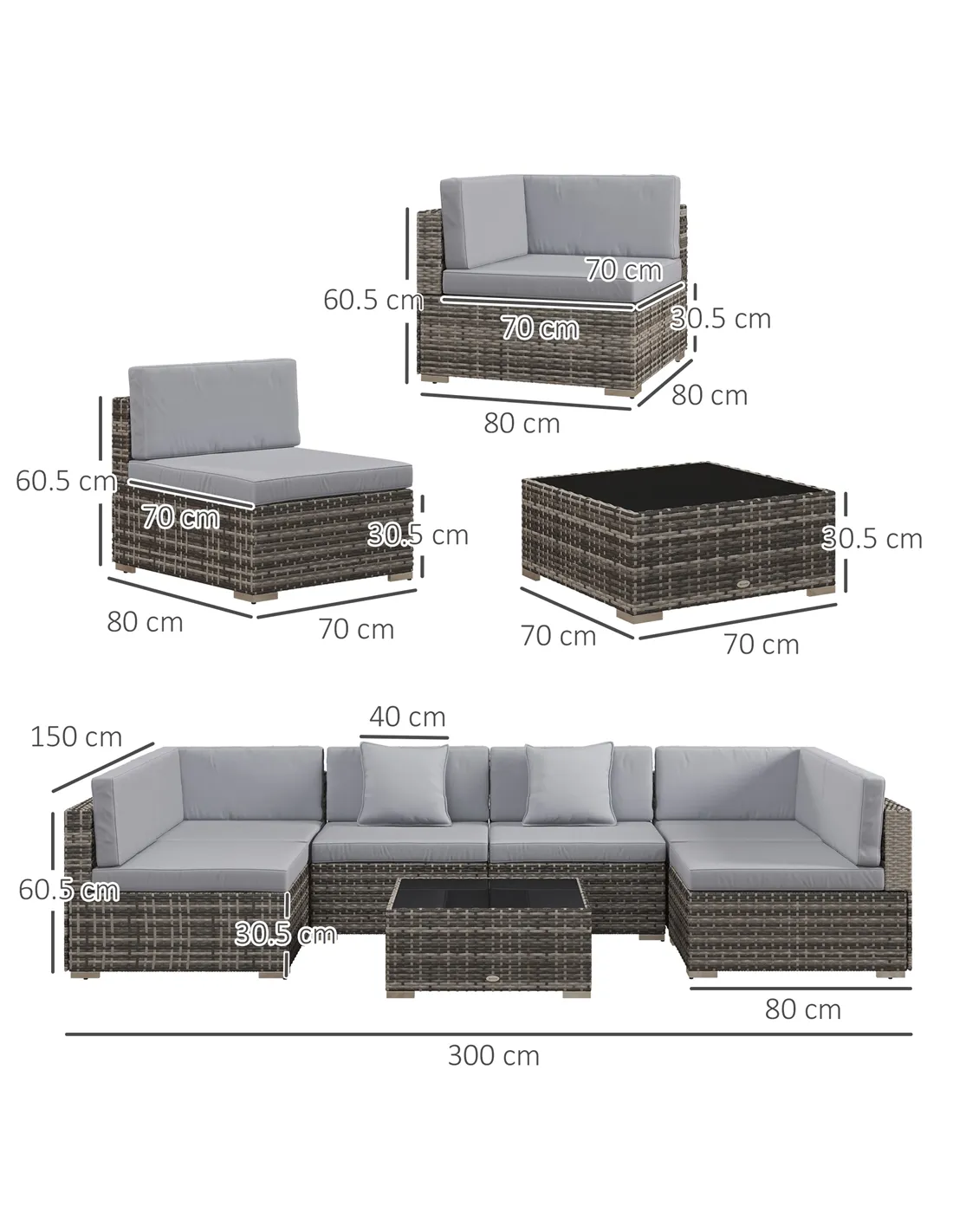 - Material: Galvanised Steel, PE Rattan, Polyester, Tempered Glass