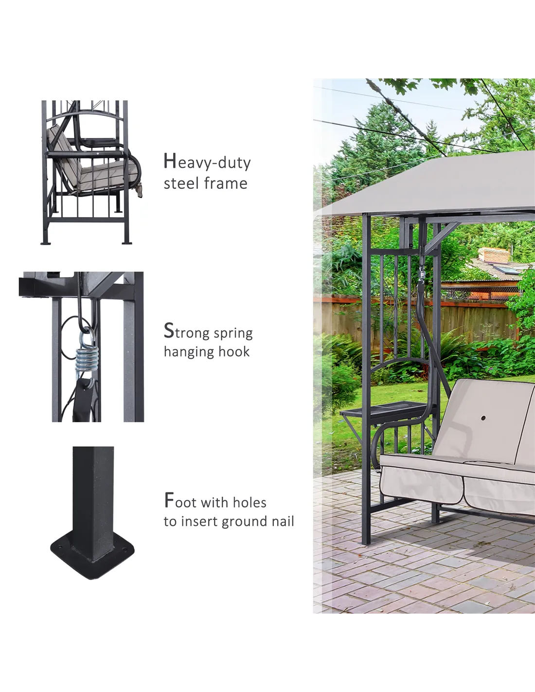 Outsunny Outdoor Garden 2 Seater Canopy Swing Chair Seat Porch Loveseat Vintage Hammock Cushioned Seat w/ and Side Drink Panel