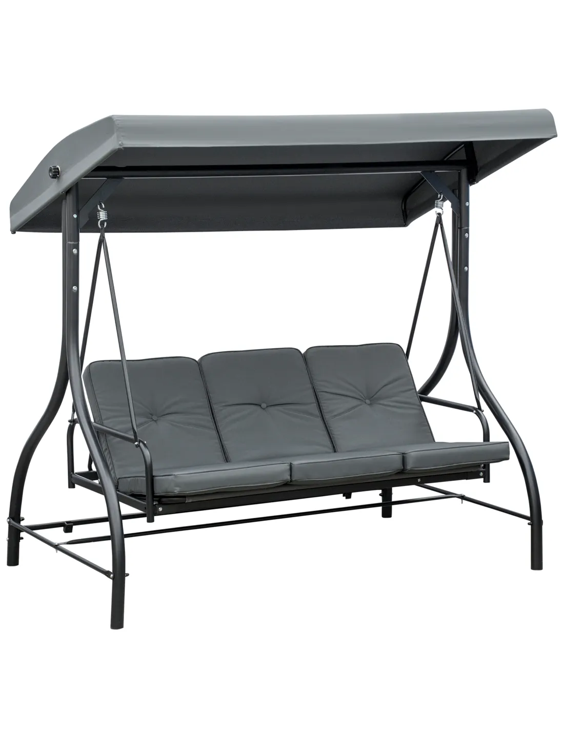 Outsunny 3 Seater Canopy Swing Chair, 2 in 1 Garden Swing Seat Bed, with Adjustable Canopy and Metal Frame, Dark Grey