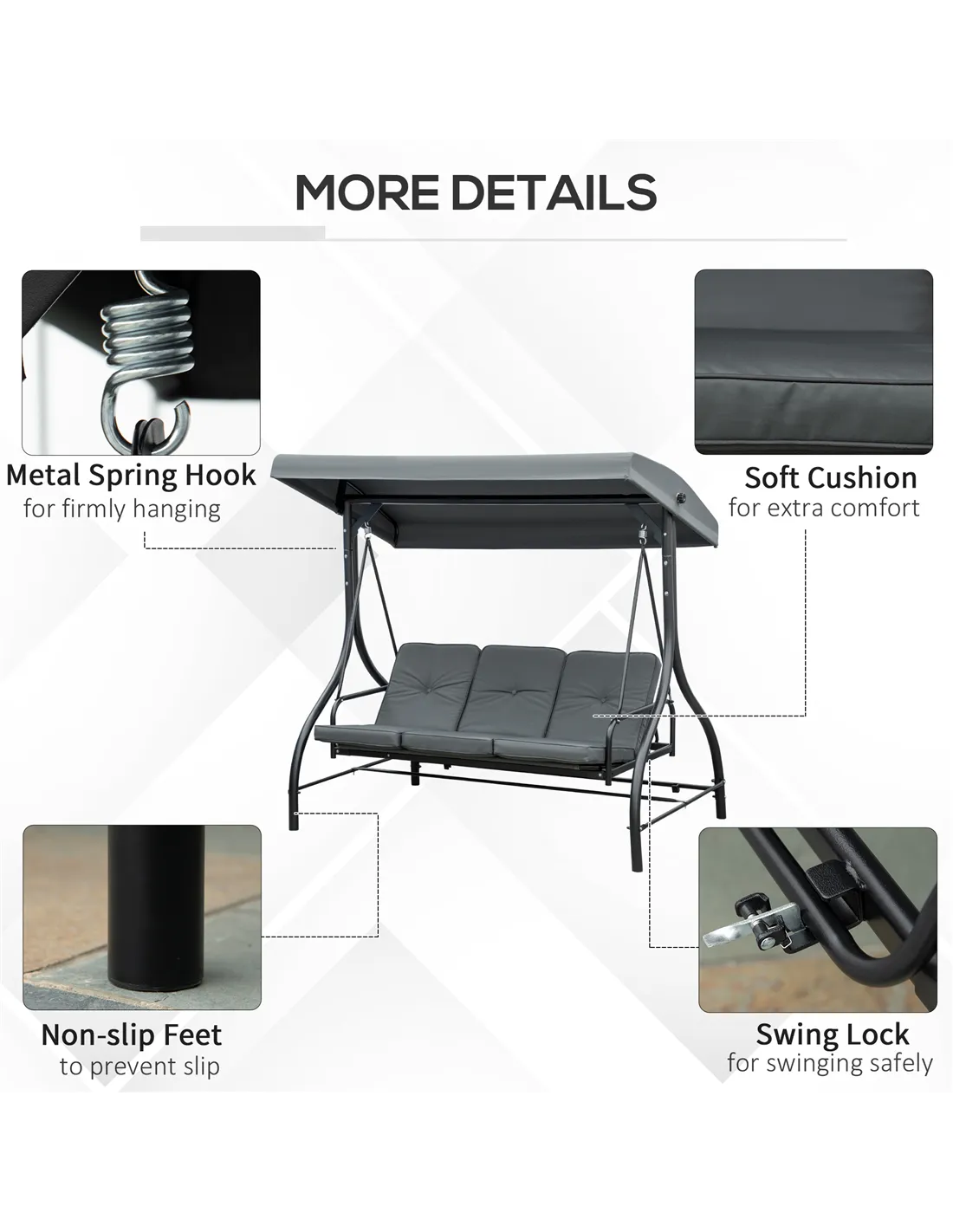 - Use the adjustable canopy to shield yourself from direct sunlight or light rain, allowing you to enjoy your outdoor space regardless of the weather.
