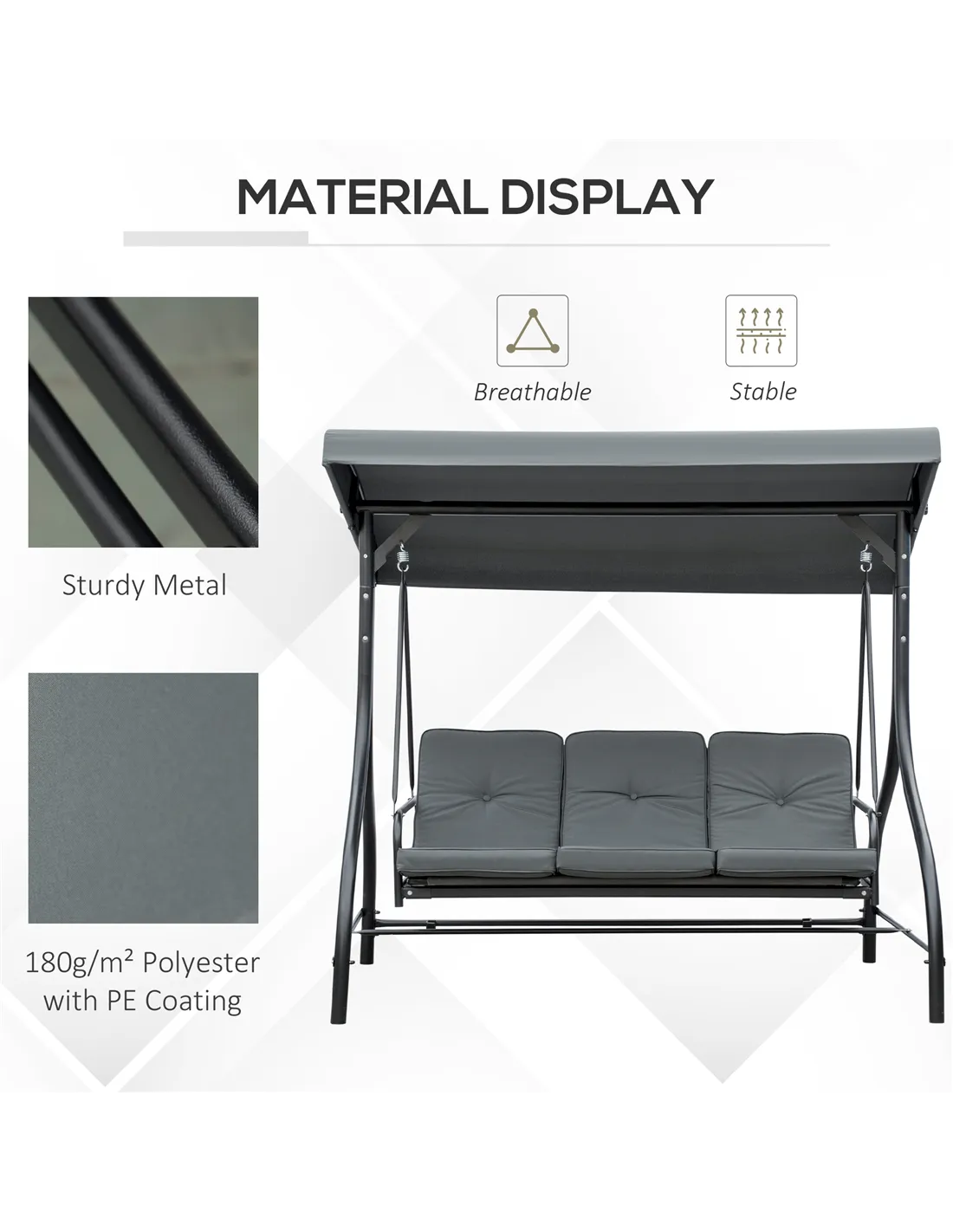 - Perfect for relaxing afternoons in your garden, this versatile swing seat comfortably accommodates three adults, making it ideal for socialising with family and friends.
