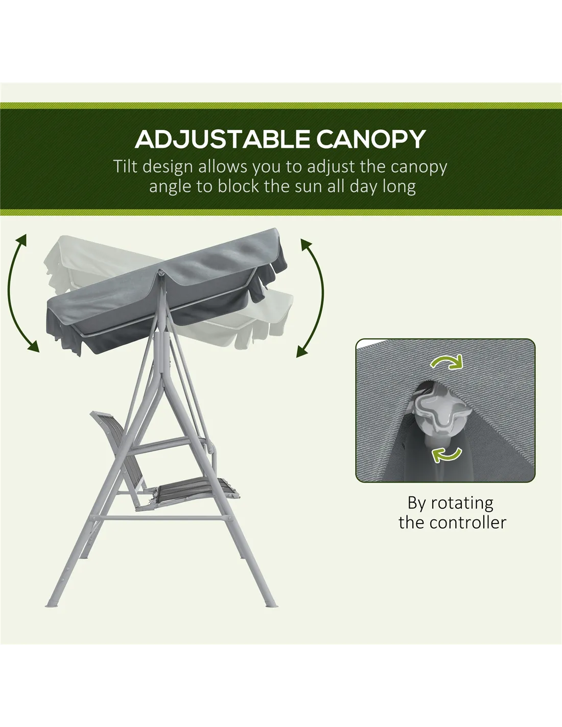 The swing comfortably supports up to 240kg, suitable for three adults. - Can the canopy be removed or adjusted?