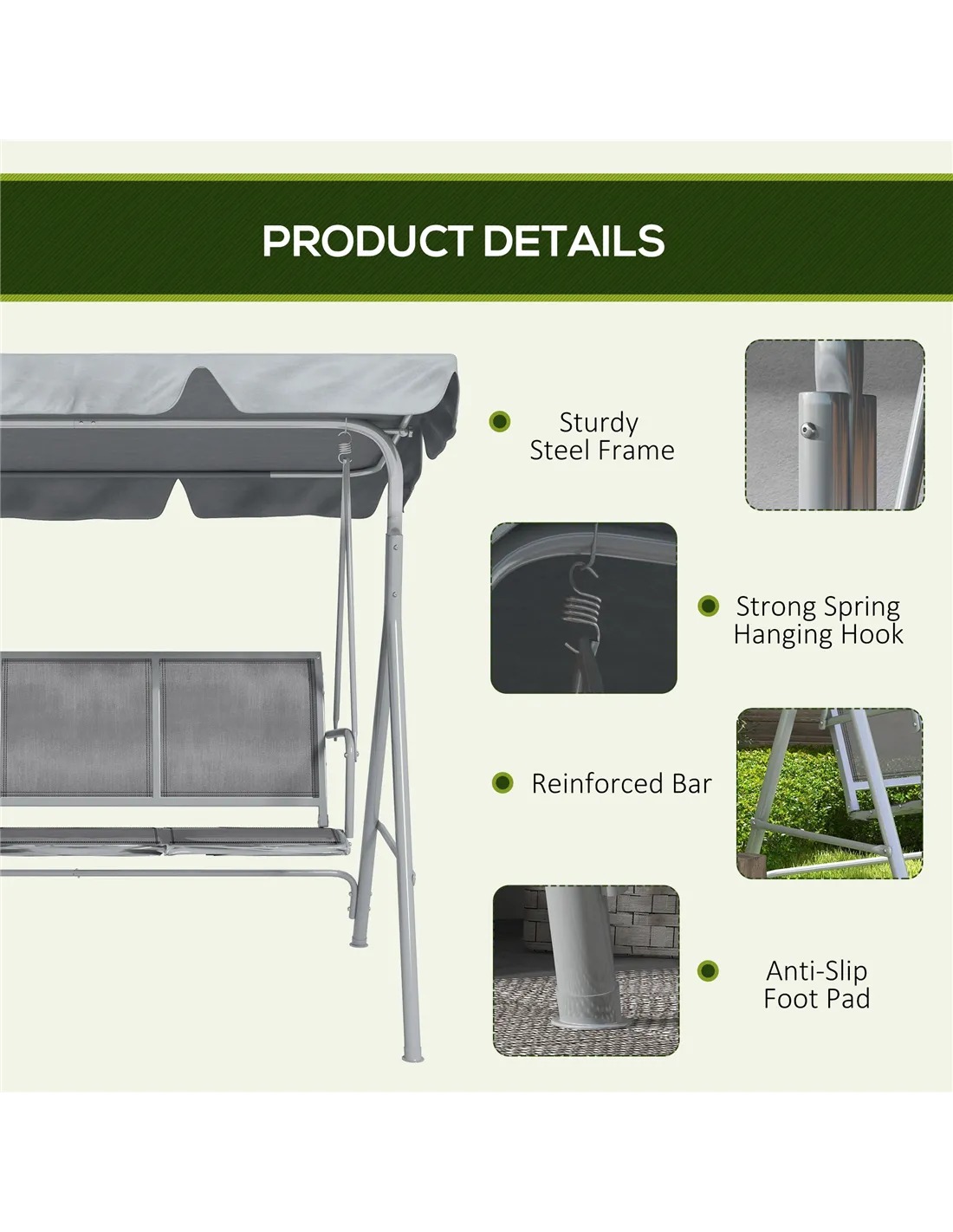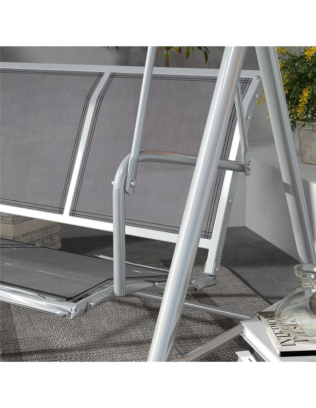- Add to your patio or garden décor to enjoy soothing swing motion
