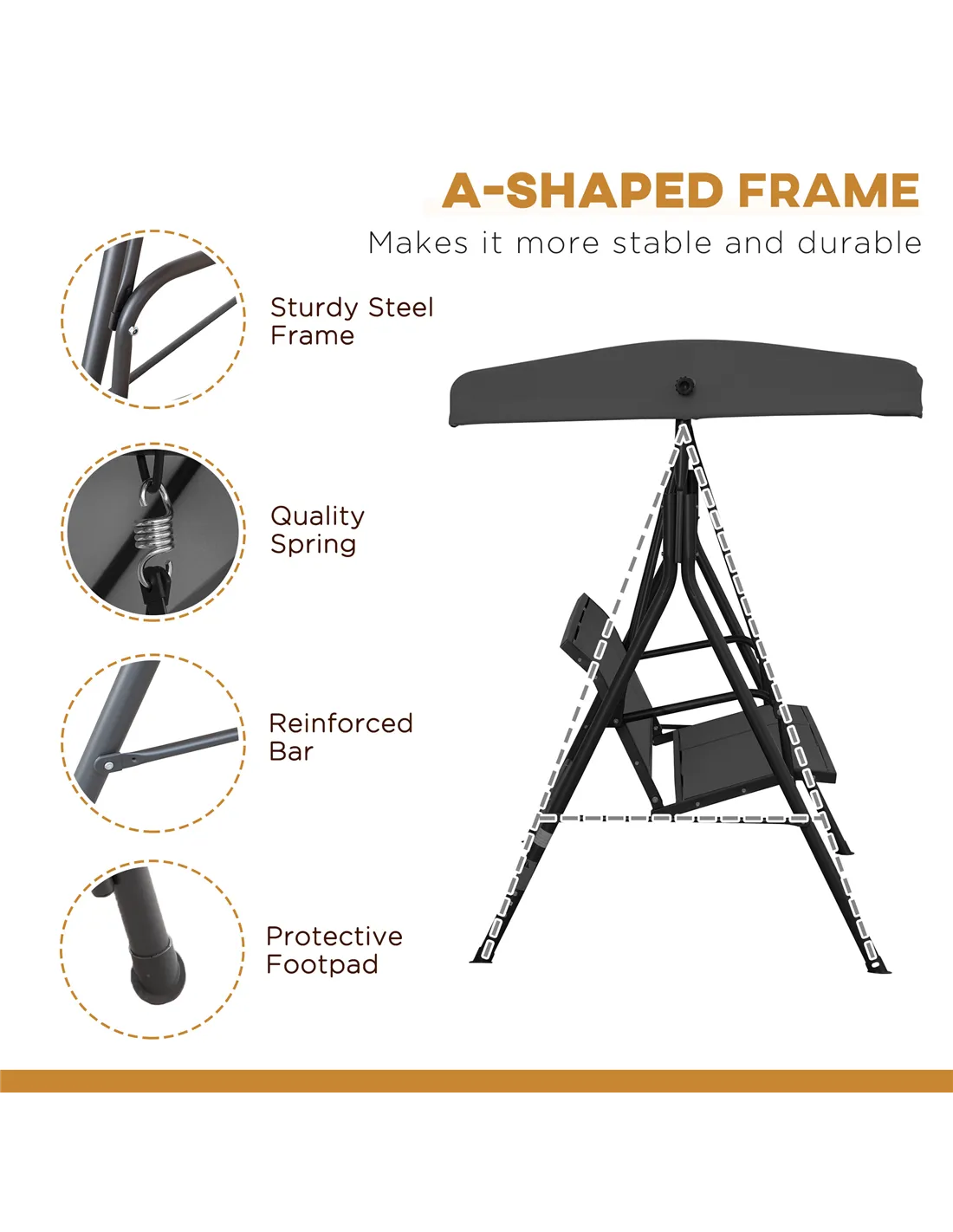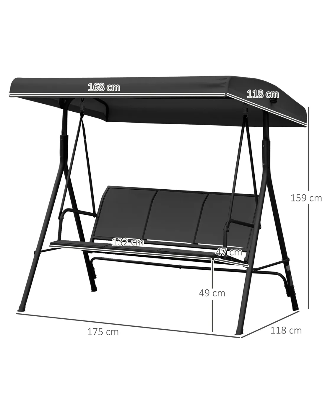 Outsunny Three-Seater Garden Swing Chair, with Canopy - Black