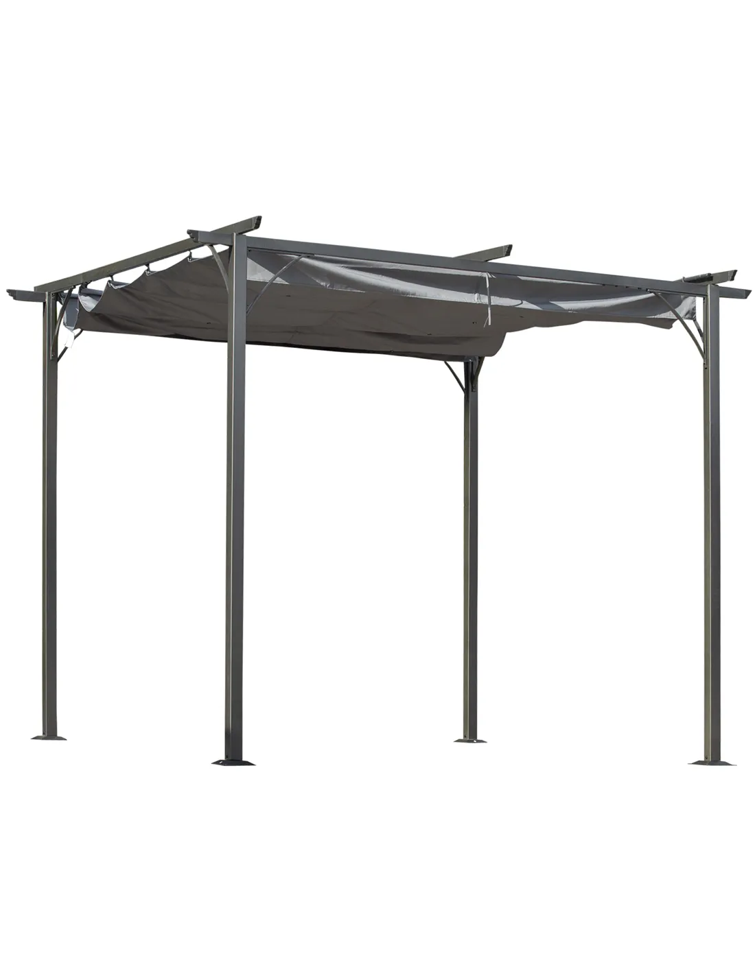 Outsunny 3 x 3(m) Metal Retractable Pergola, Garden Gazebo Metal Pergola Canopy Outdoor Sun Shade Shelter for Party BBQ, Grey
