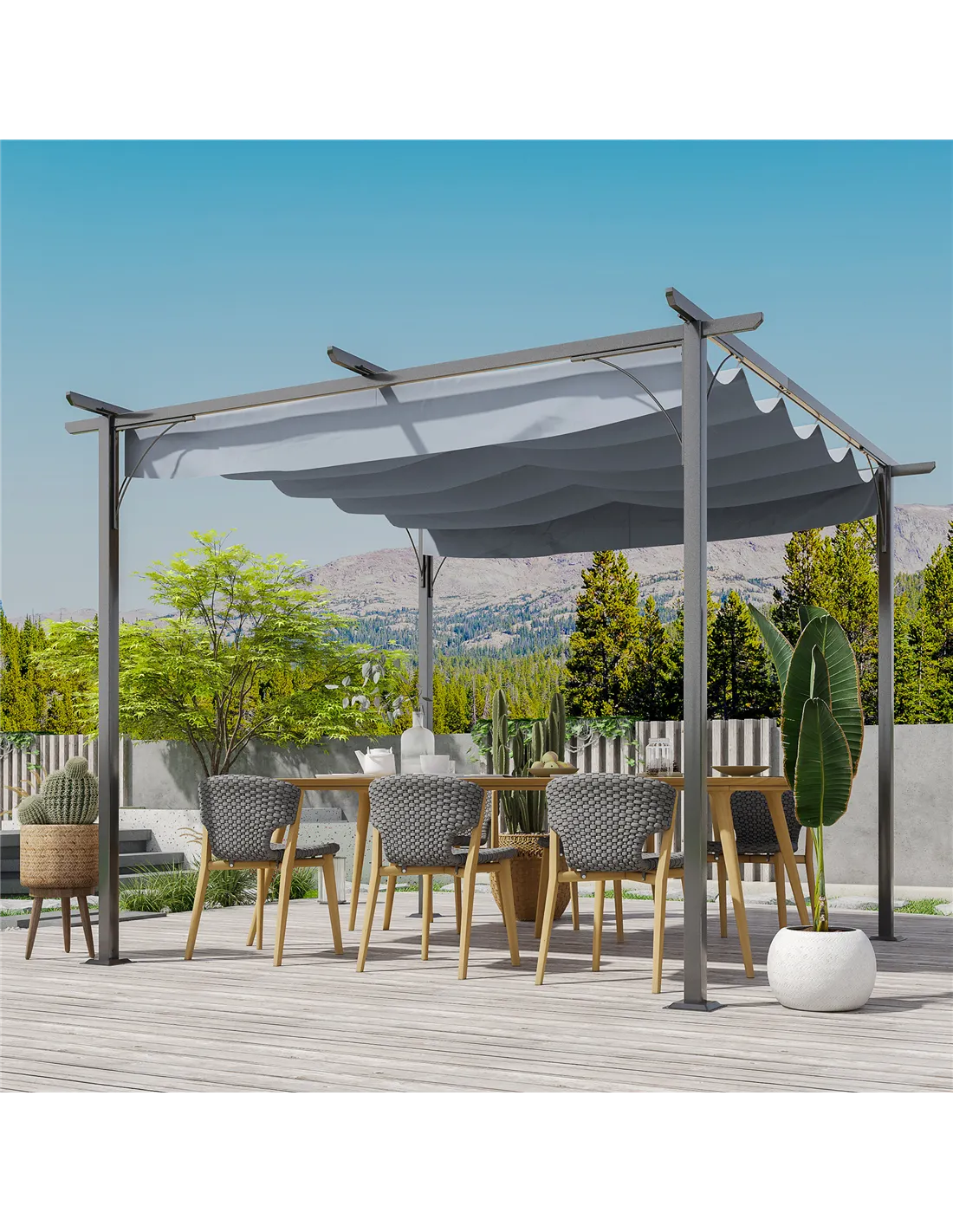 - Transform your garden or patio into a stylish retreat with this versatile retractable pergola, perfect for alfresco dining or relaxing afternoons.