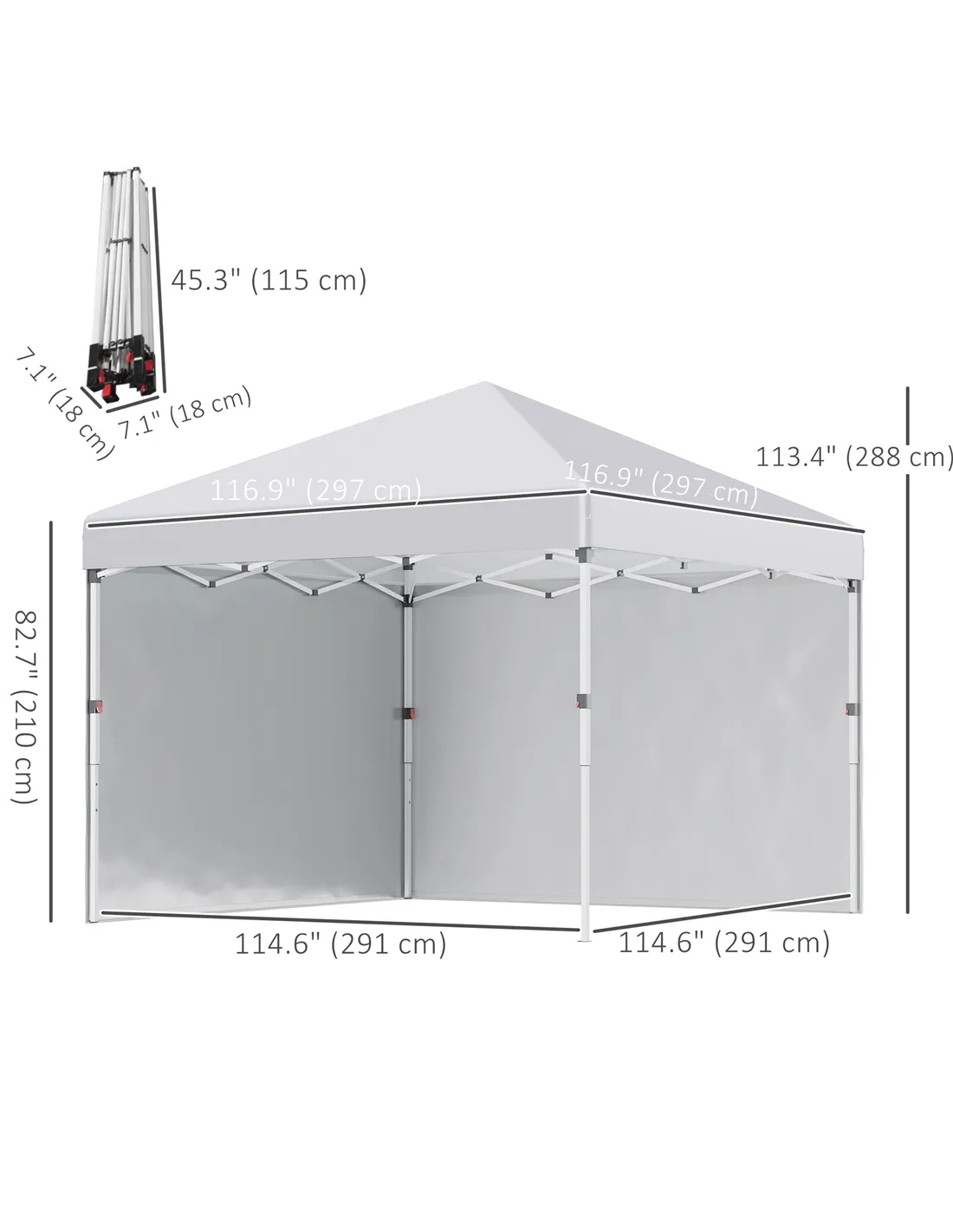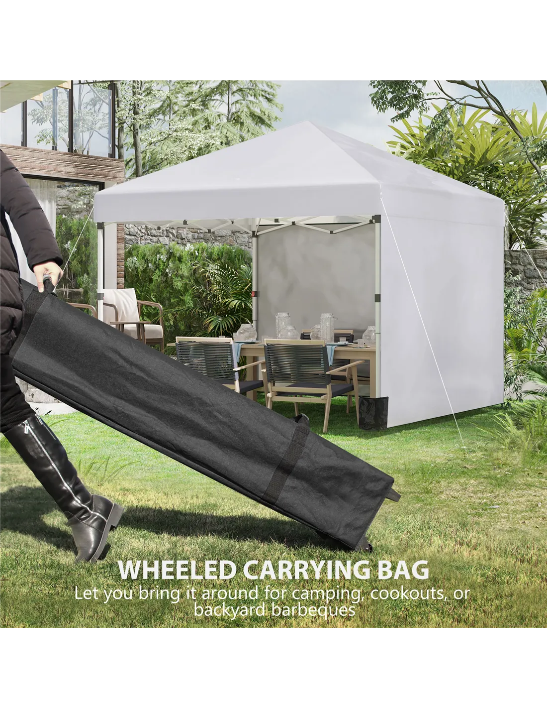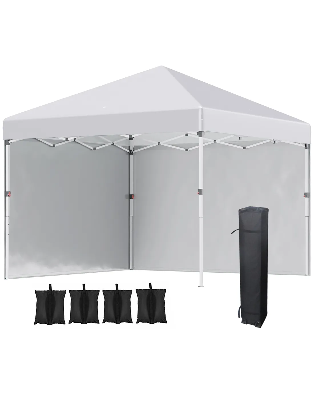 Outsunny 3 x 3 (M) Pop Up Gazebo, UPF 30+ with 2 Sidewalls, Leg Weight Bags and Wheeled Bag, Height Adjustable Party Tent Event Shelter for Garden, Patio, White
