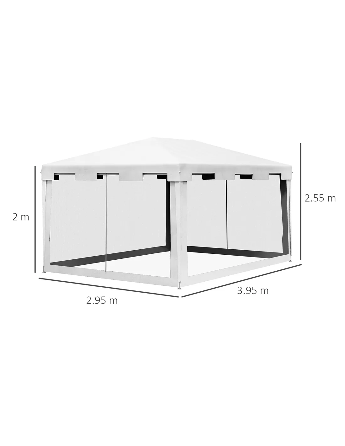 Outsunny 4 x 3 m Party Tent Wedding Gazebo Outdoor Waterproof PE Canopy Shade with Panel