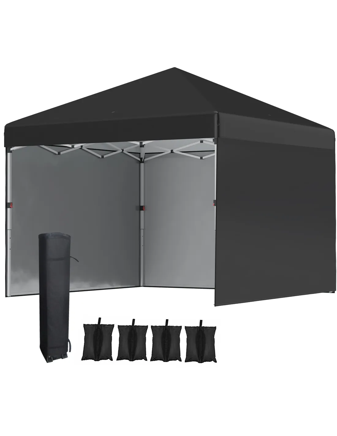 Outsunny 3 x 3 (M) Pop Up Gazebo Event Shelter, Height Adjustable Party Tent with 3 Sidewalls, Weight Bags and Wheeled Bag
