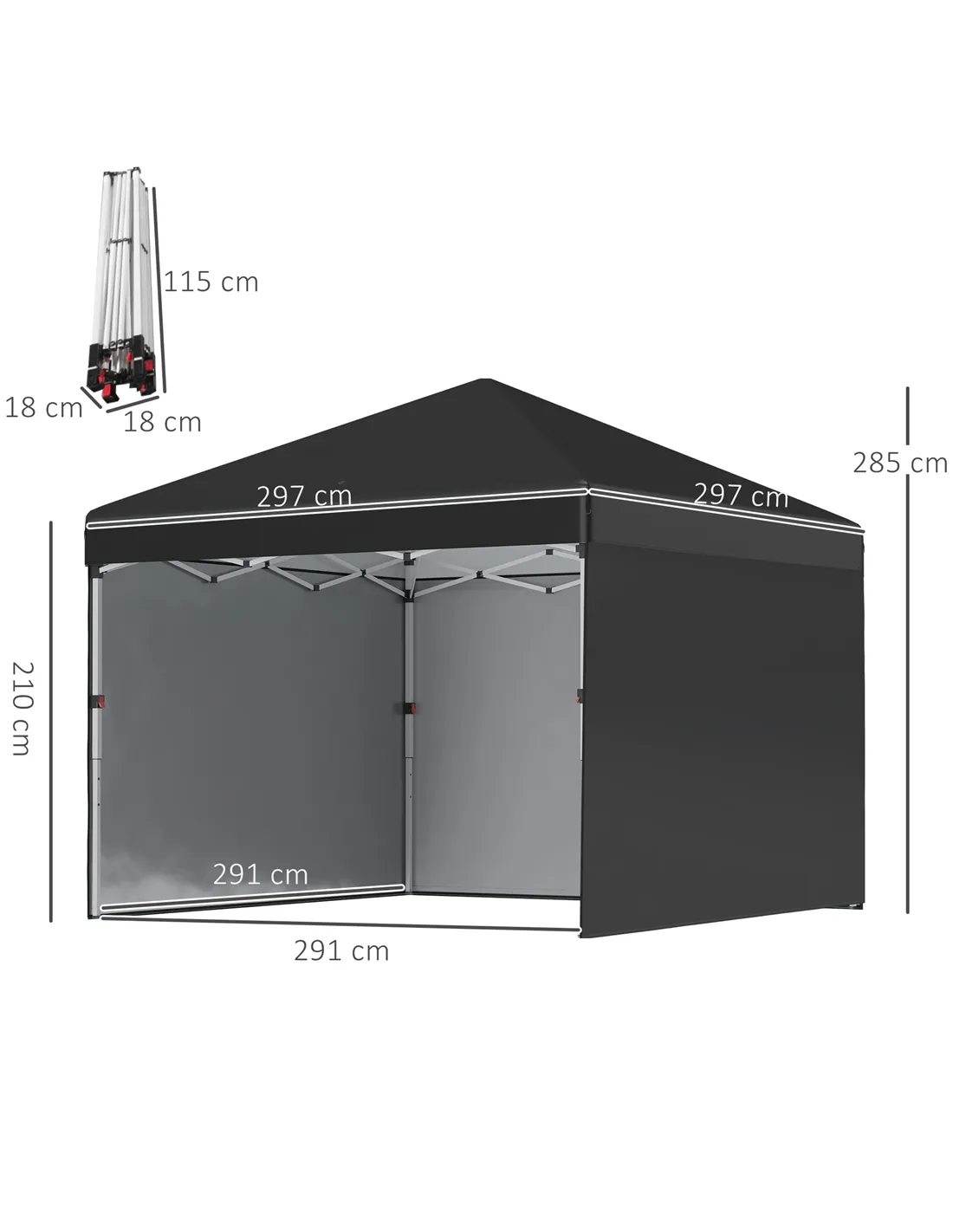 - Overall Dimensions: 297L x 297W x 285H cm