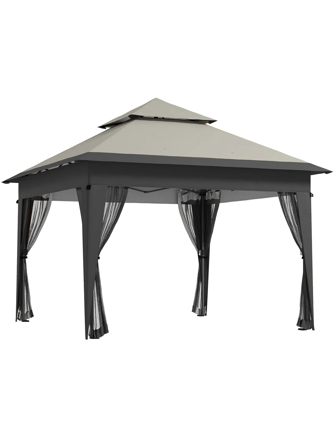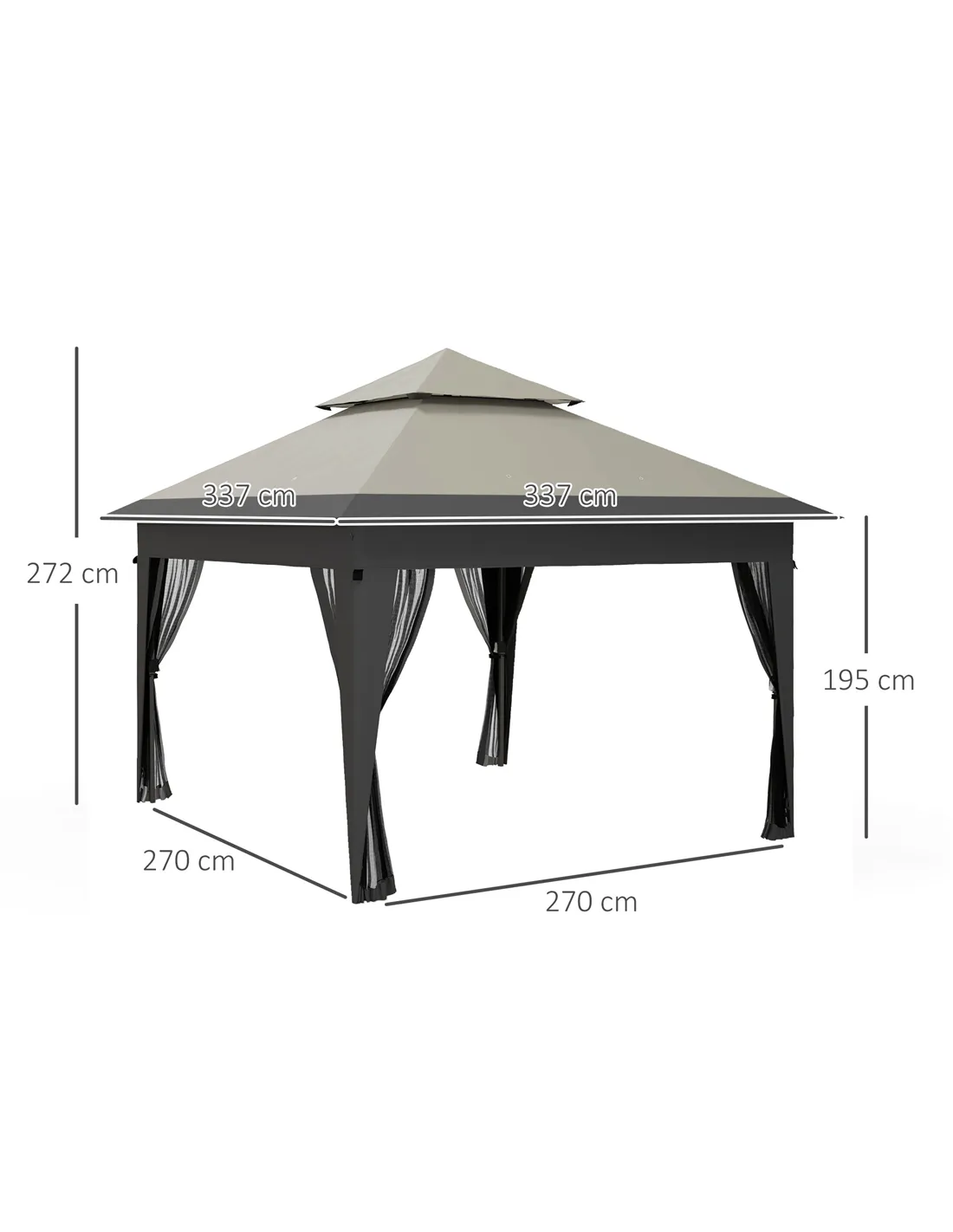 Outsunny 3 x 3(m) Pop Up Gazebo with Mosquito Netting, 1 Person Easy up Marquee Party Tent with 1-Button Push, Double Roof, Carry Bag, Sandbags, Height Adjustable Instant Shelter, Grey