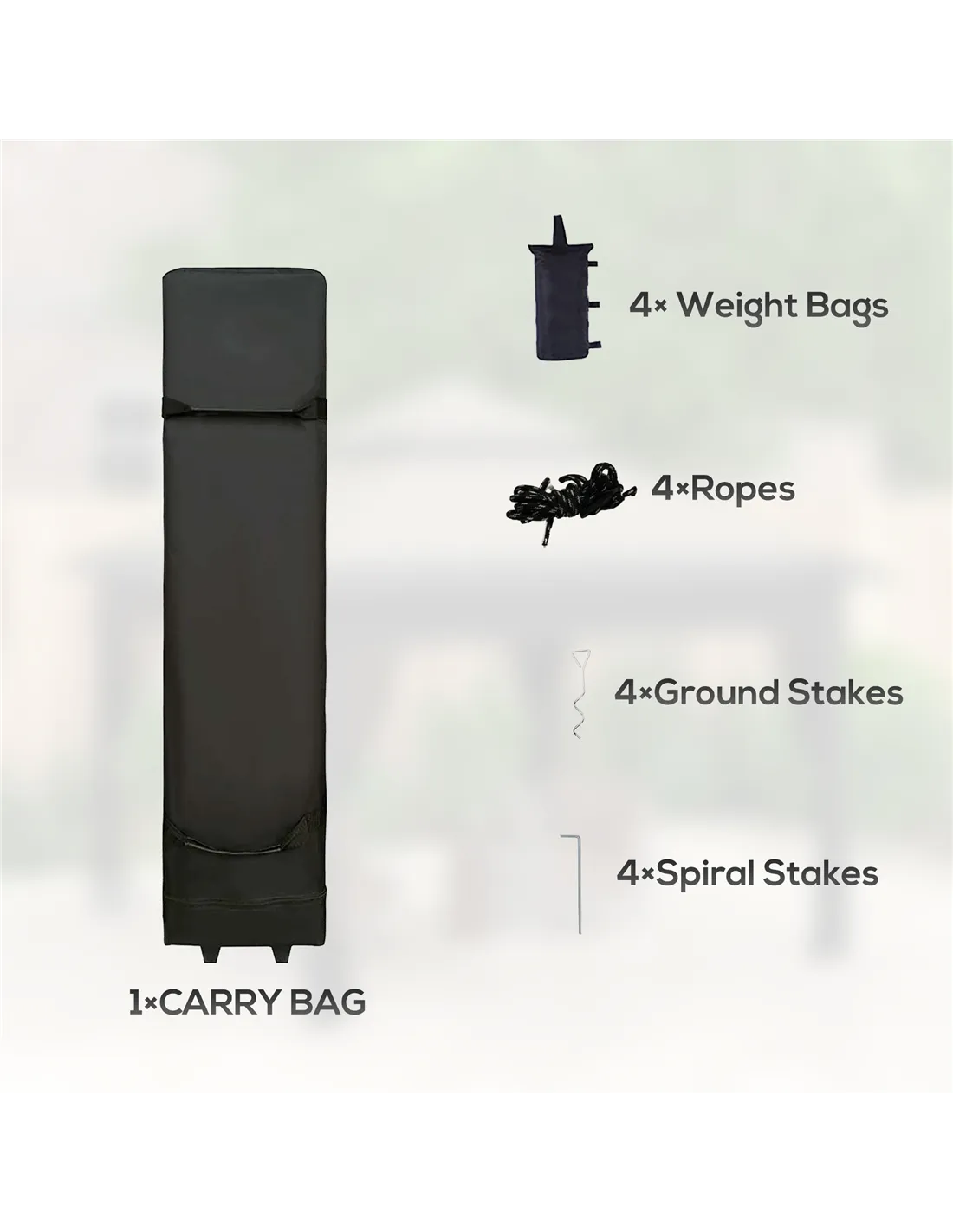 A garden tent for your outdoor gatherings, assembled oh so quickly - bring this Outsunny 3 x 3(m) pop-up gazebo to your outdoors this season and beyond. The freely adjustable steel frame means a strong core, which can be set to a height most suitable for you. Stakes, ropes and sandbags stabilise your garden shelter on soft ground. It provides shade for 5-8 people.
