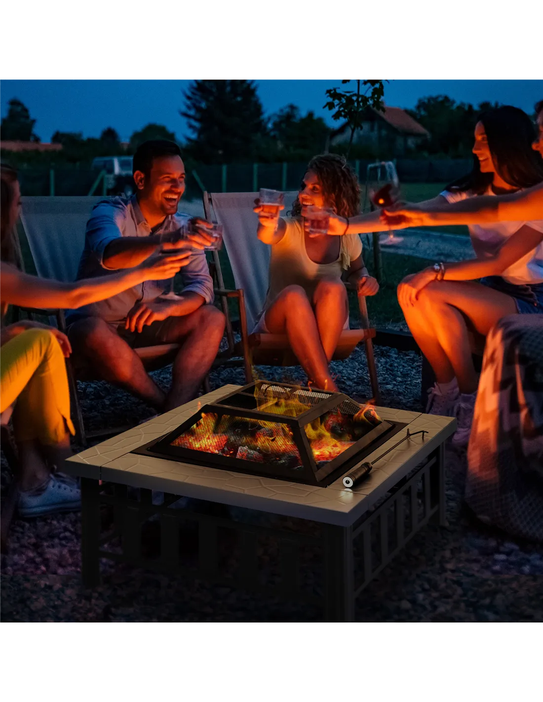 Based on customer reviews, the Outsunny firepit is praised for its sturdy metal construction and elegant faux stone tabletop, which adds a sophisticated touch to outdoor settings. Users appreciate the safety mesh cover that effectively contains sparks and debris, making it safer for family use. Many highlight the convenience of the poker tool for tending the fire and removing the lid. The firepit’s ability to withstand high temperatures without warping has been noted as a significant benefit. Overall, buyers commend Outsunny for delivering a reliable and attractive outdoor heating solution.