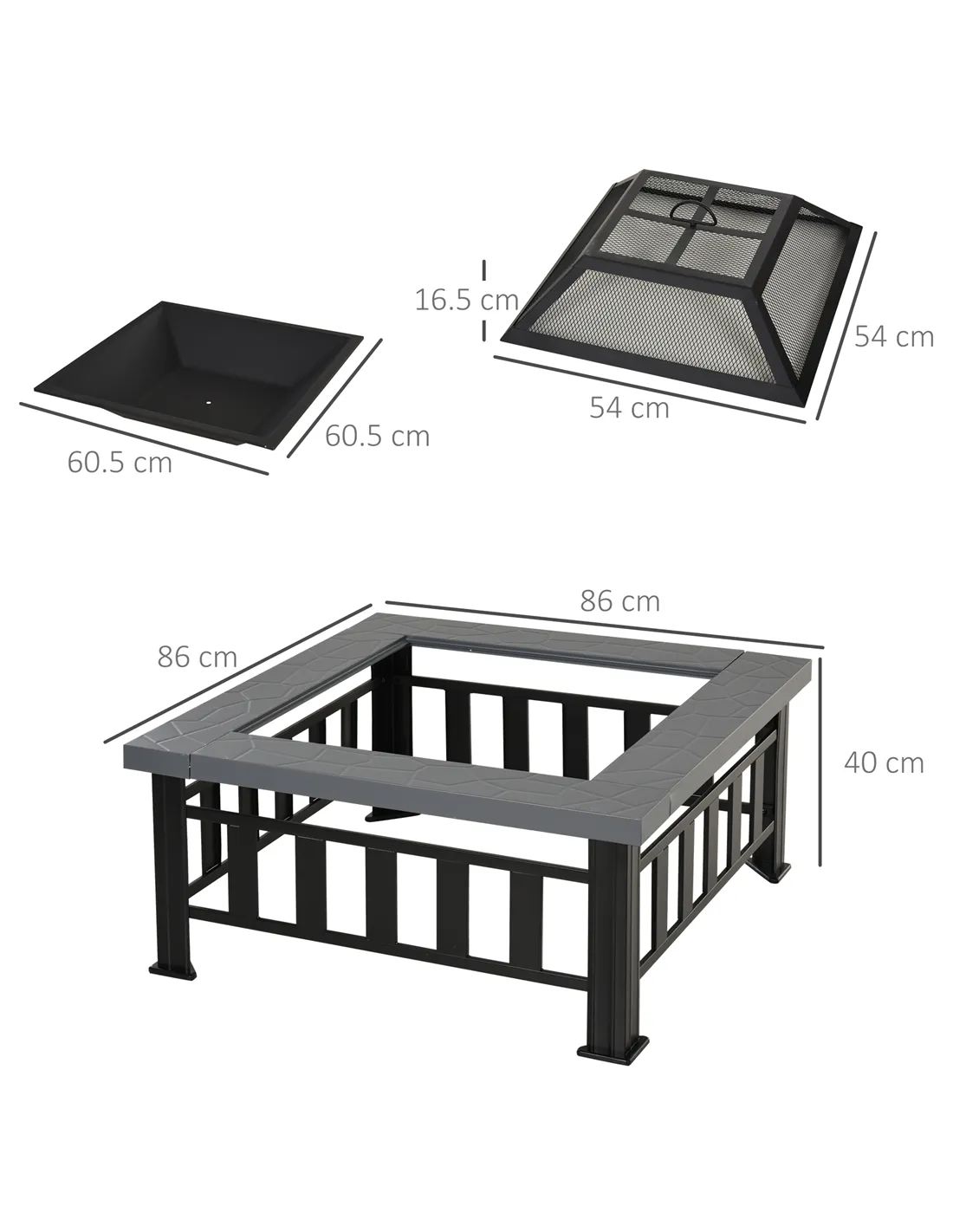 - Fire Pit Cover Dimension: 54L x 54W x 16.5H cm
