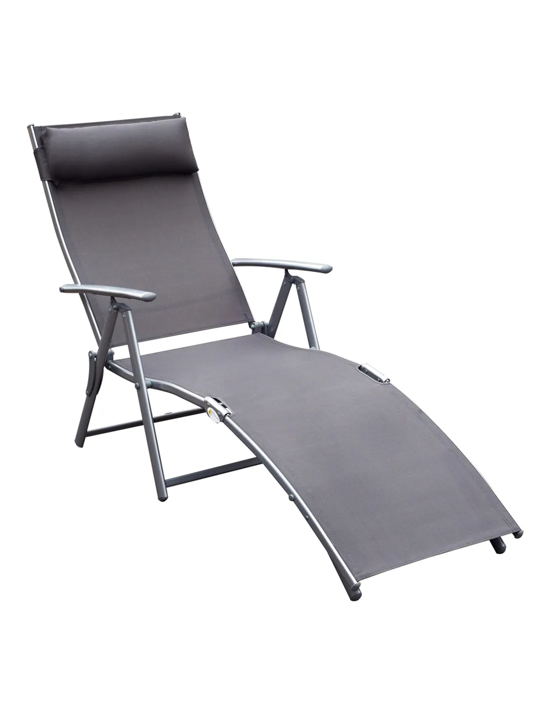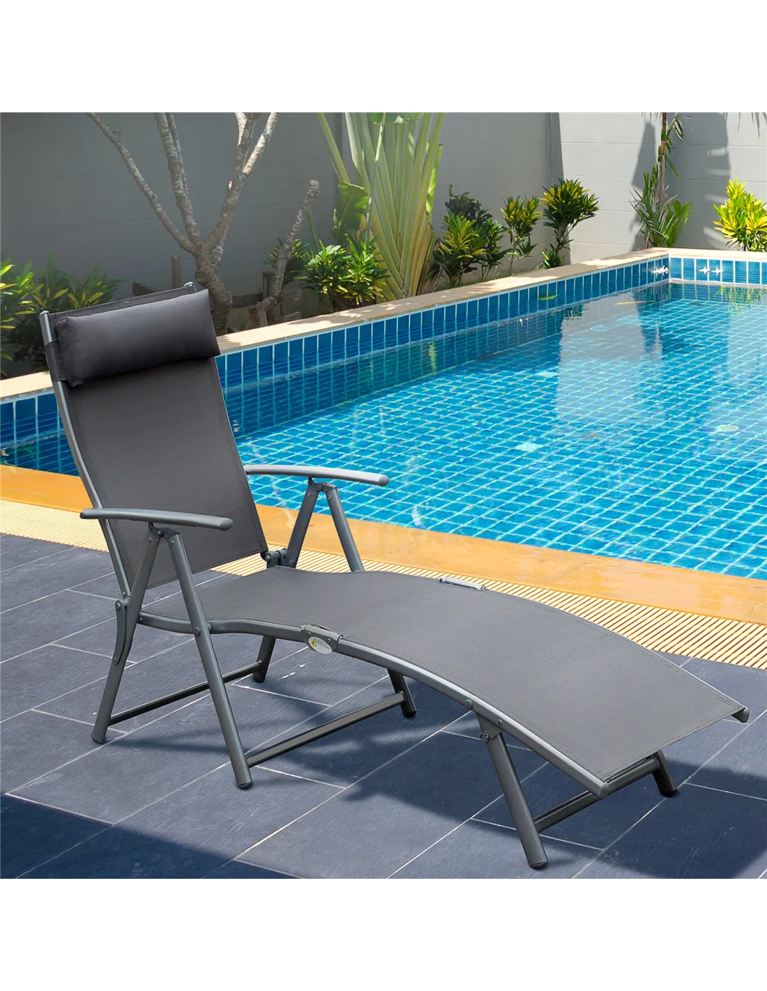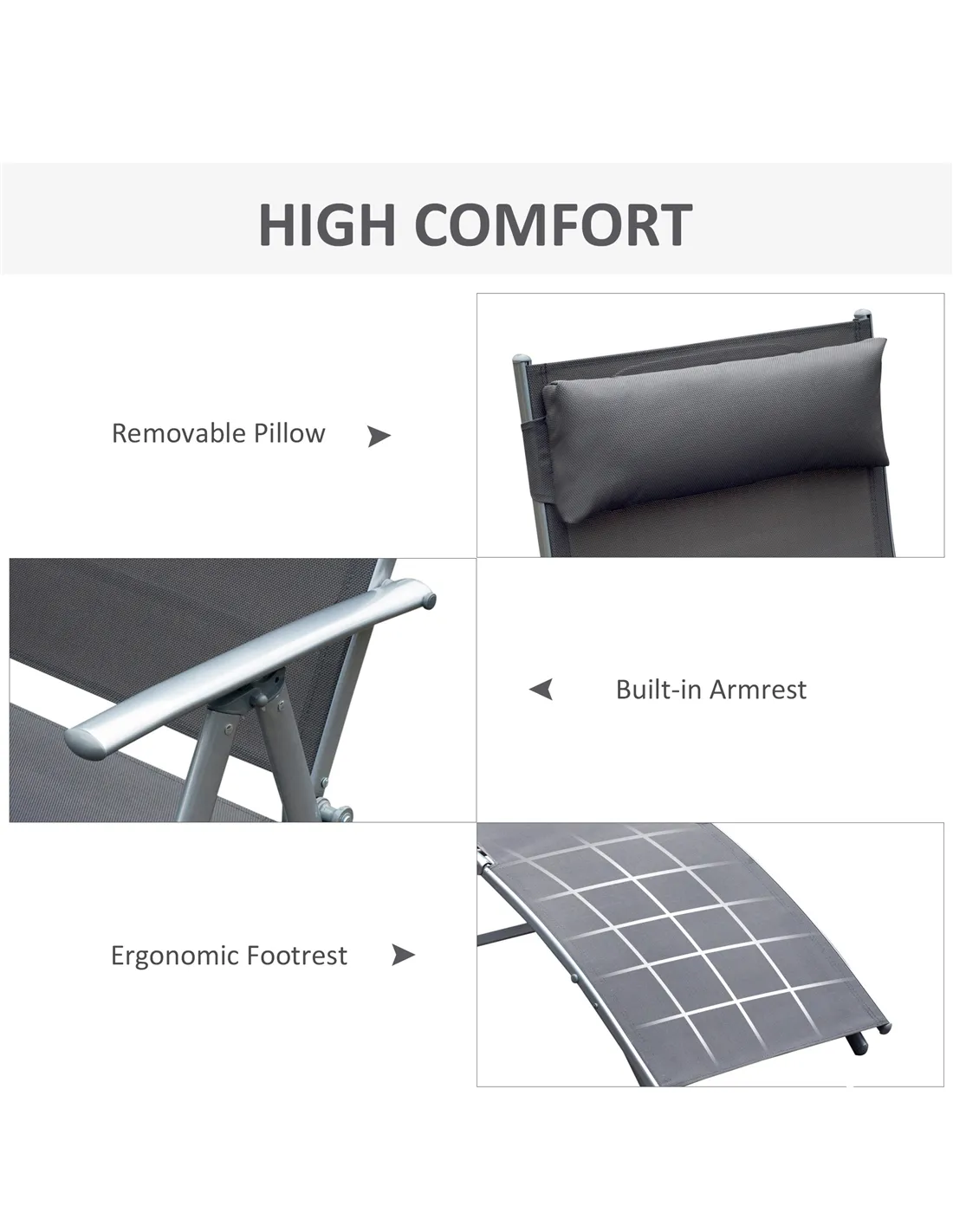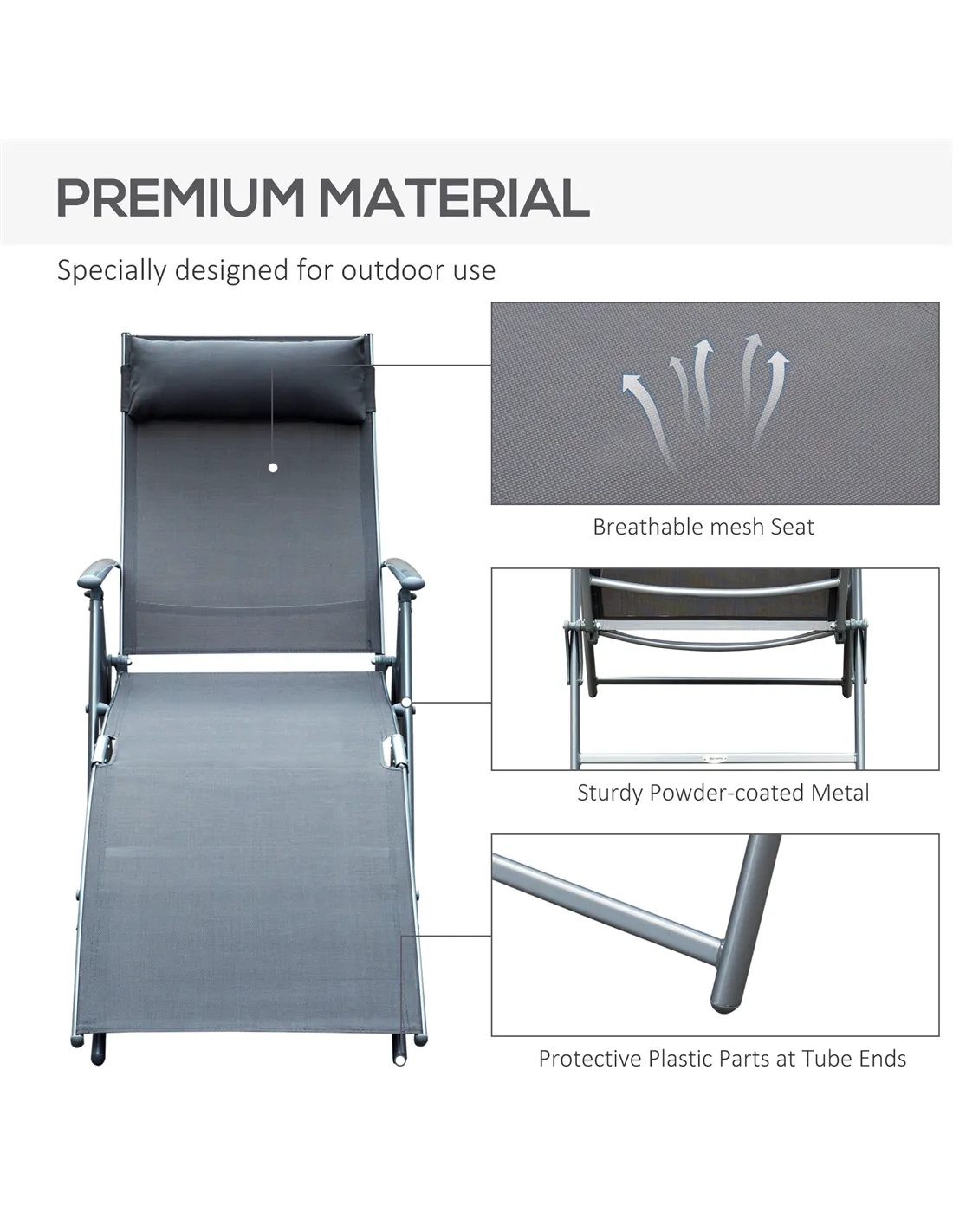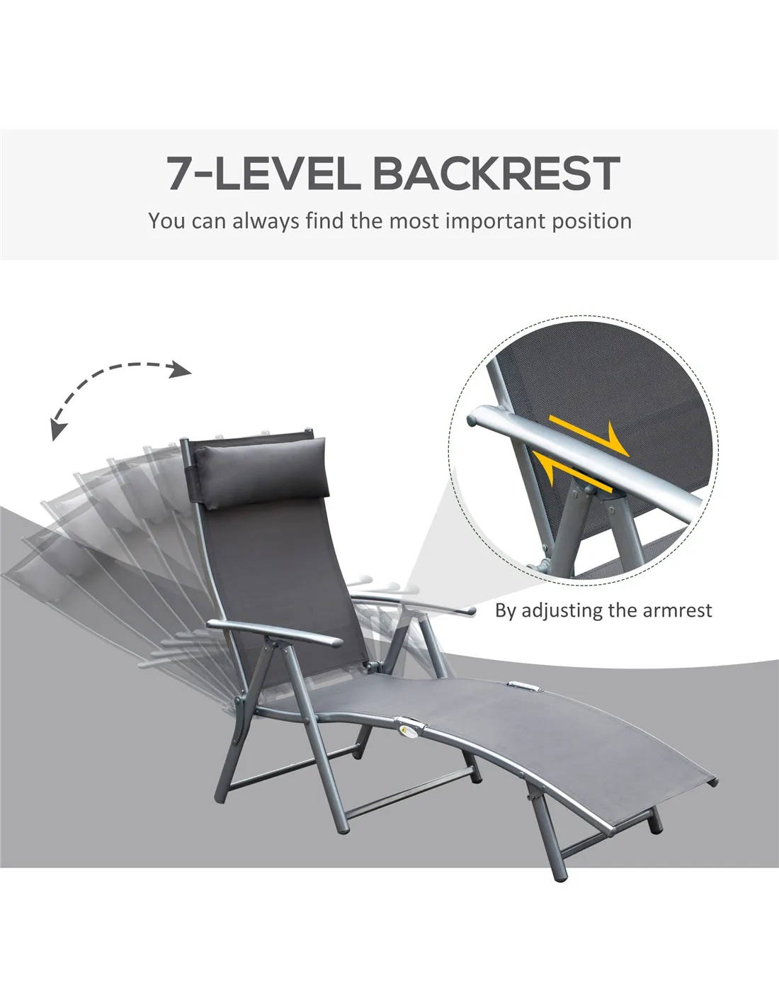 Outsunny Sun Lounger Steel Frame Outdoor Folding Chaise Texteline Lounge Chair Recliner with Headrest & 7 Levels Adjustable Backrest, Grey