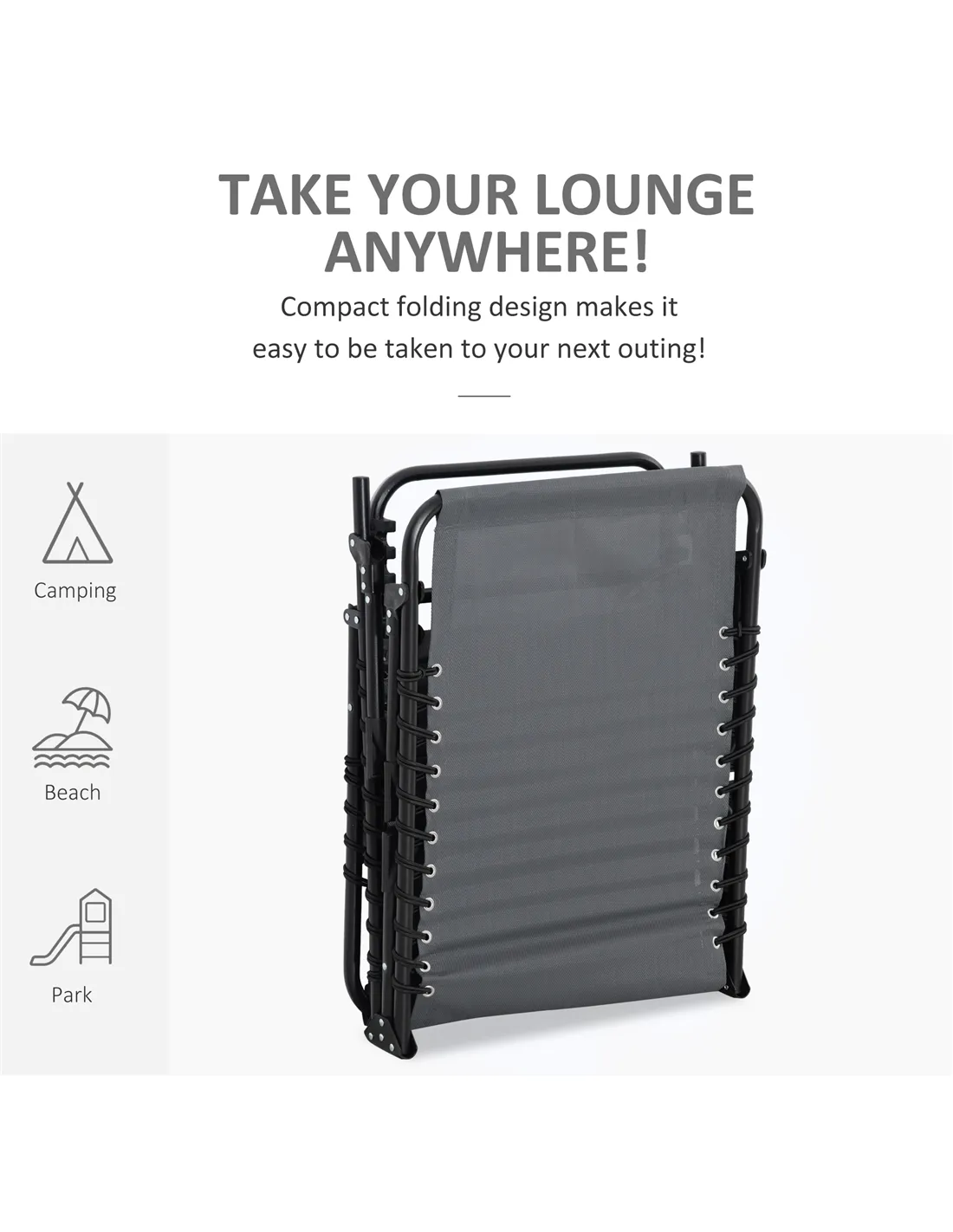 The Outsunny portable sun lounger is an ideal companion for a variety of outdoor settings. Whether you’re relaxing in your garden, unwinding by the pool, or enjoying a day at the beach, this folding recliner offers versatile comfort. Its adjustable backrest with five positions allows you to find the perfect angle for sunbathing, reading, or napping. The compact fold and lightweight design make it easy to transport for camping trips or picnics in the park. The integrated side pocket keeps essentials like sunscreen, books, or mobile devices within easy reach, enhancing convenience during your leisure time.