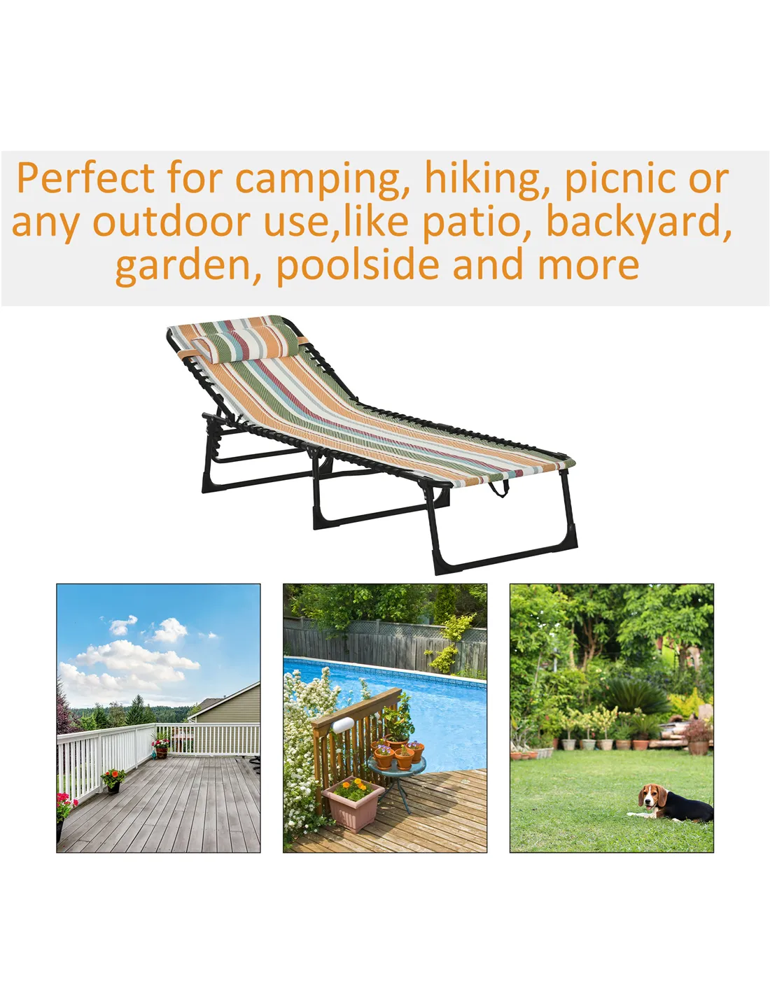 Outsunny Folding Sun Lounger Beach Chaise Chair Garden Reclining Cot Camping Recliner with 4 Position Adjustable Multicolored