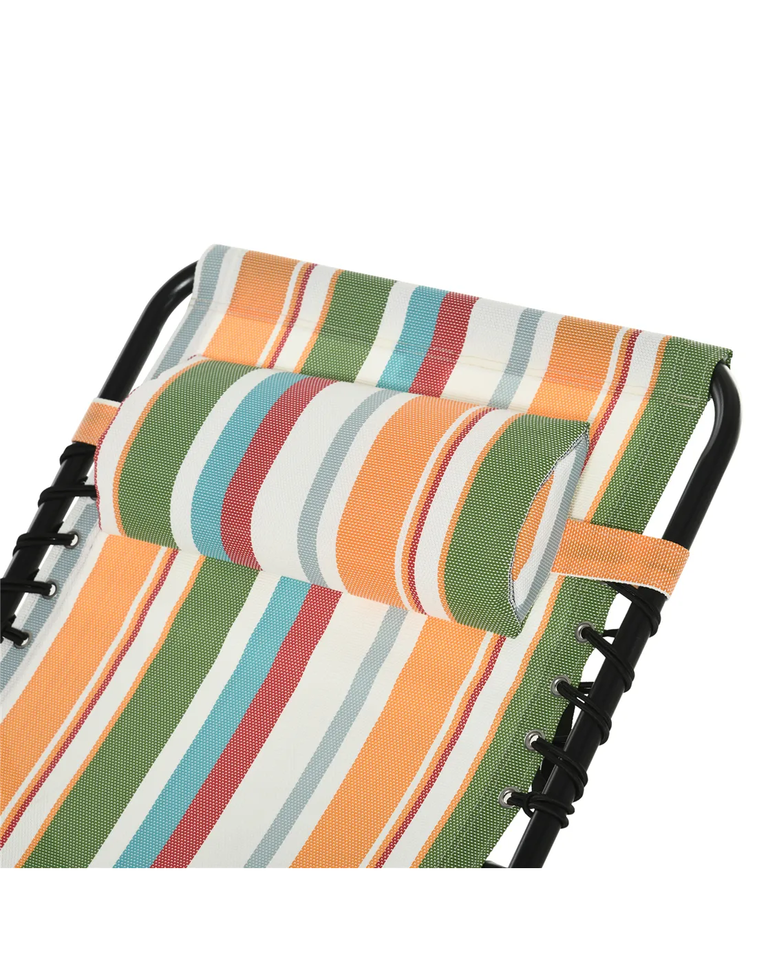 The Outsunny folding sun lounger is a versatile addition to any outdoor setting. Perfect for relaxing on the beach, it offers four adjustable reclining positions to suit your comfort, whether you prefer to sit upright reading a book or lie flat soaking up the sun. Its lightweight, foldable design makes it ideal for garden use, poolside lounging, or camping trips, easily fitting into your car boot for effortless transport. The breathable mesh fabric ensures cool comfort during warm days, while the ergonomic elastic rope suspension supports your body to reduce muscle tension. This multicoloured recliner blends practicality with style, enhancing your outdoor leisure experience.