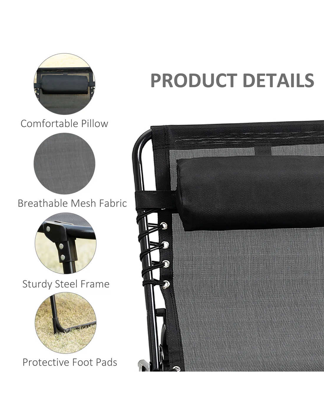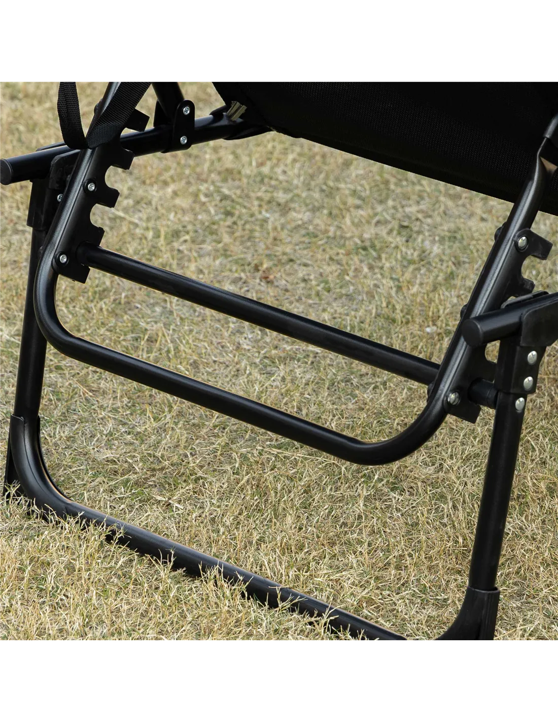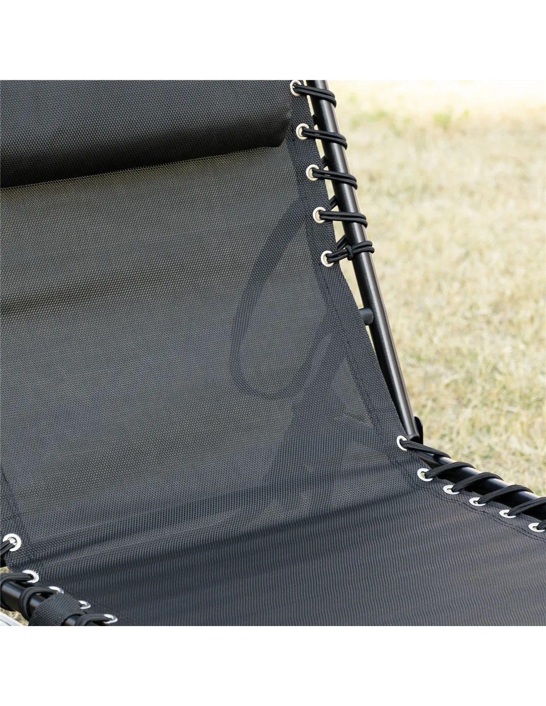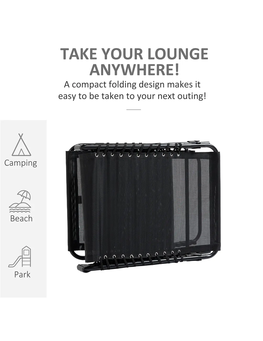 Outsunny Portable Sun Lounger, Folding Camping Bed Cot, Reclining Lounge Chair 5-position Adjustable Backrest with Side Pocket, Pillow for Patio Garden Beach Pool, Black
