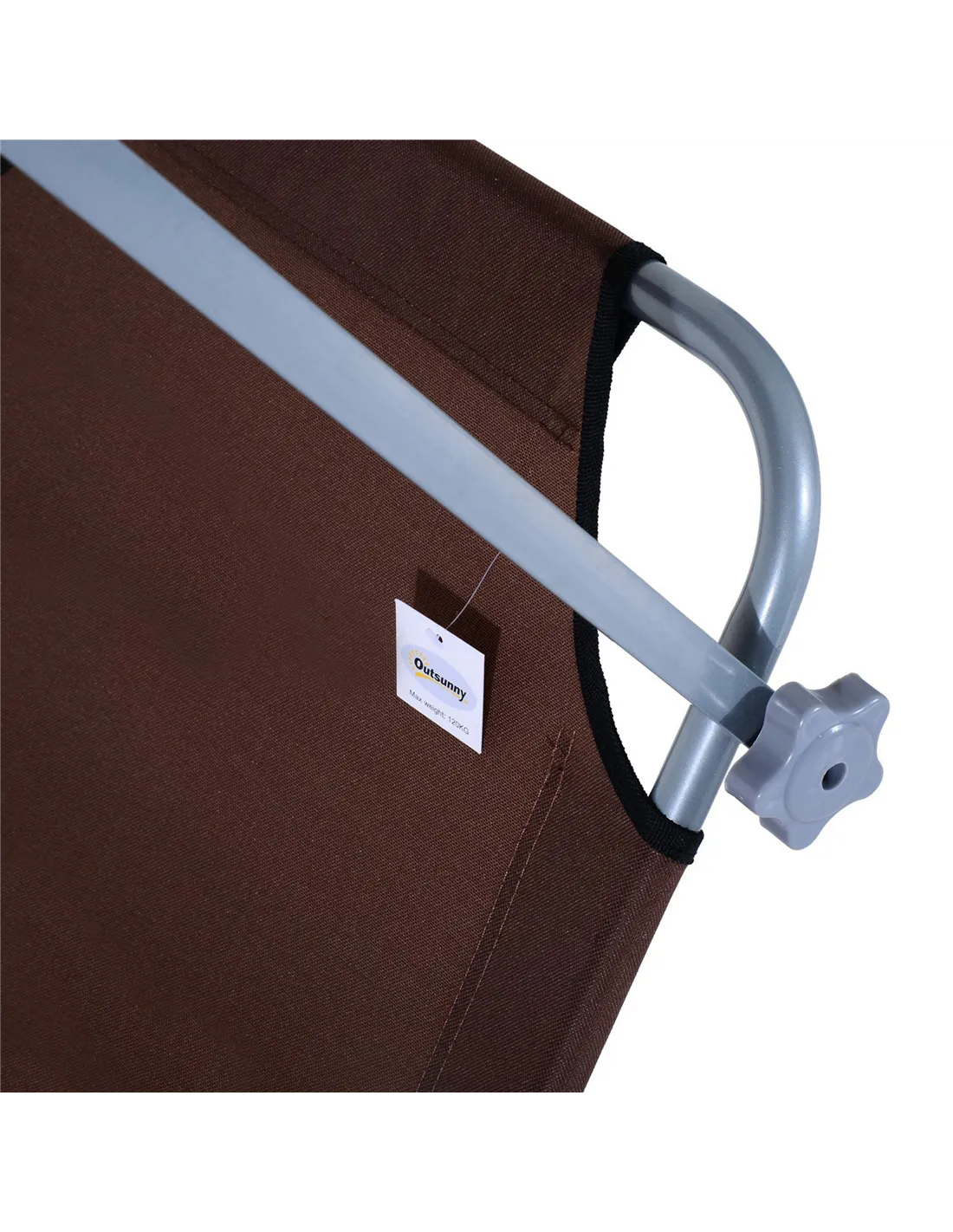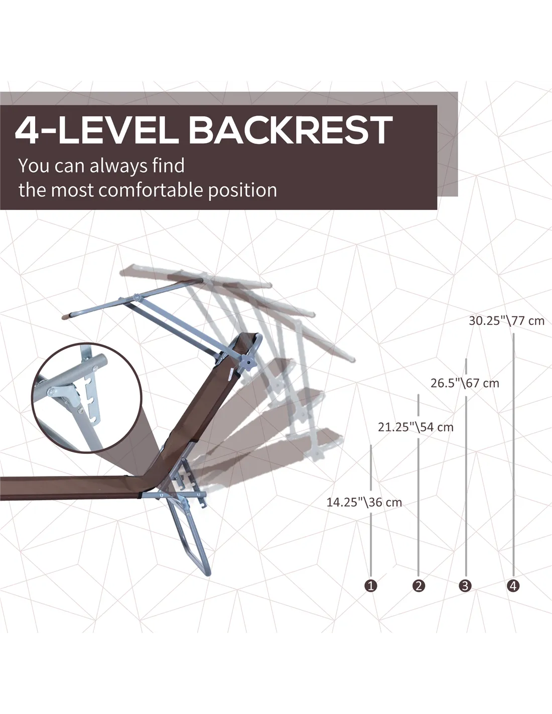 Outsunny 2 Pieces Outdoor Foldable Sun Lounger, 4 Level Adjustable Backrest Reclining Sun Lounger Chair with Angle Adjust Sun Shade Awning for Beach, Garden, Patio, Brown