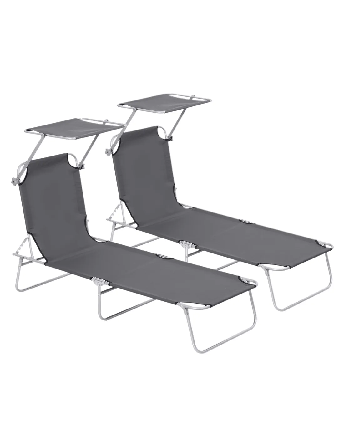 Outsunny 2 Pieces Outdoor Foldable Sun Lounger, 4 Level Adjustable Backrest Reclining Sun Lounger Chair with Angle Adjust Sun Shade Awning for Beach, Garden, Patio, Dark Grey